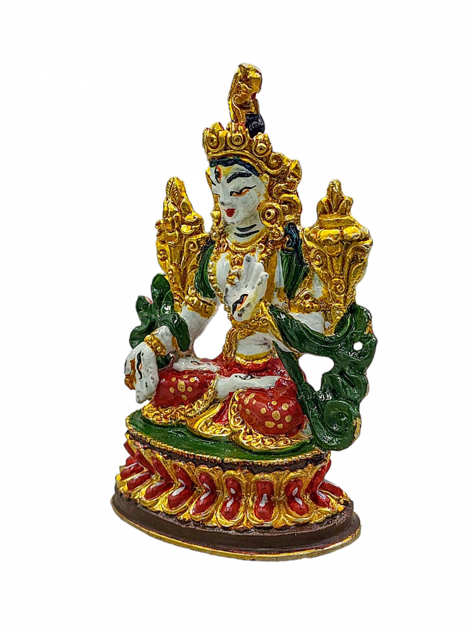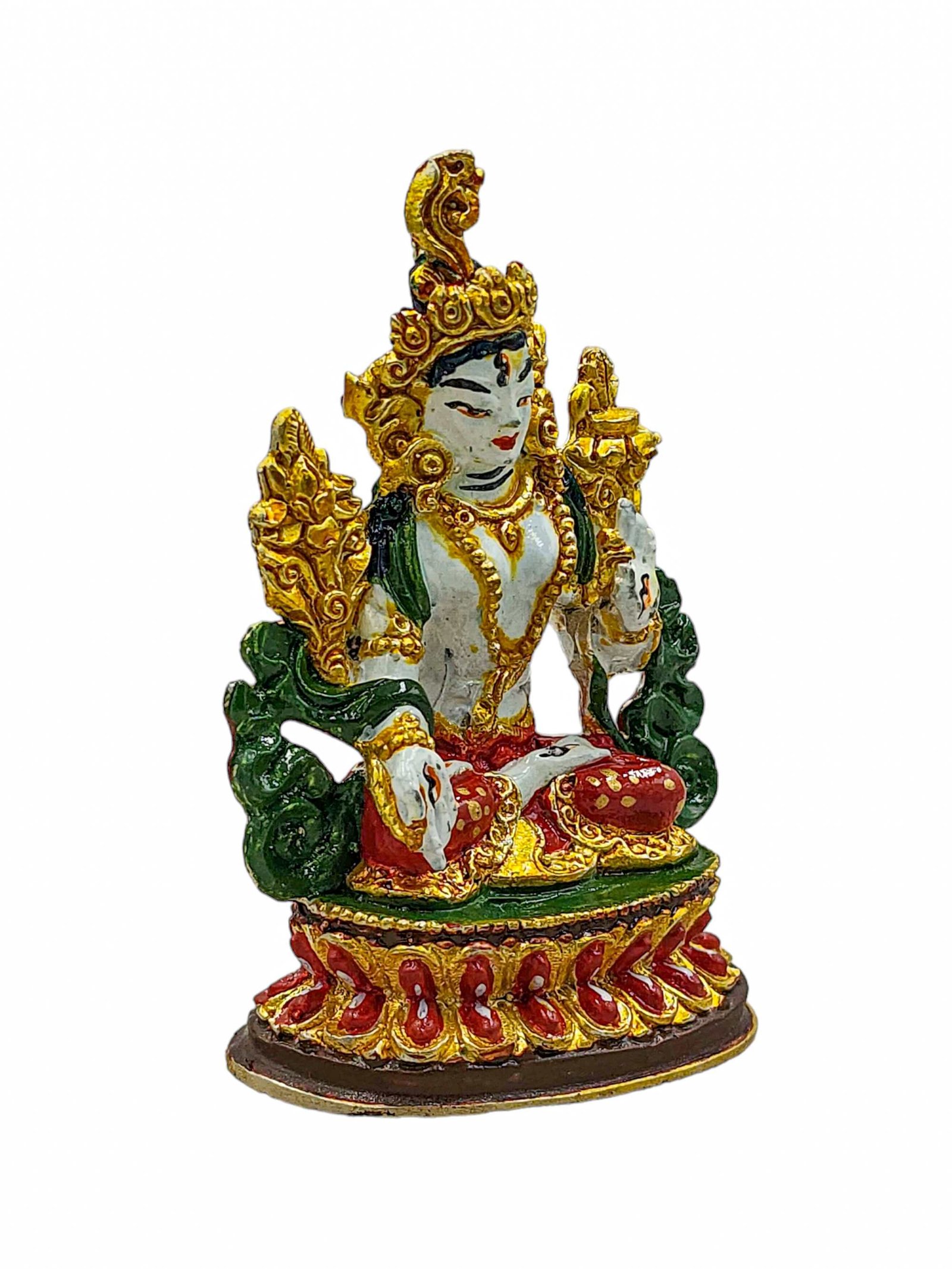 White Tara, Buddhist Miniature Statue, High Quality, Traditional Color Finishing, High Quality , Goddess of longevity, healing, and serene compassion