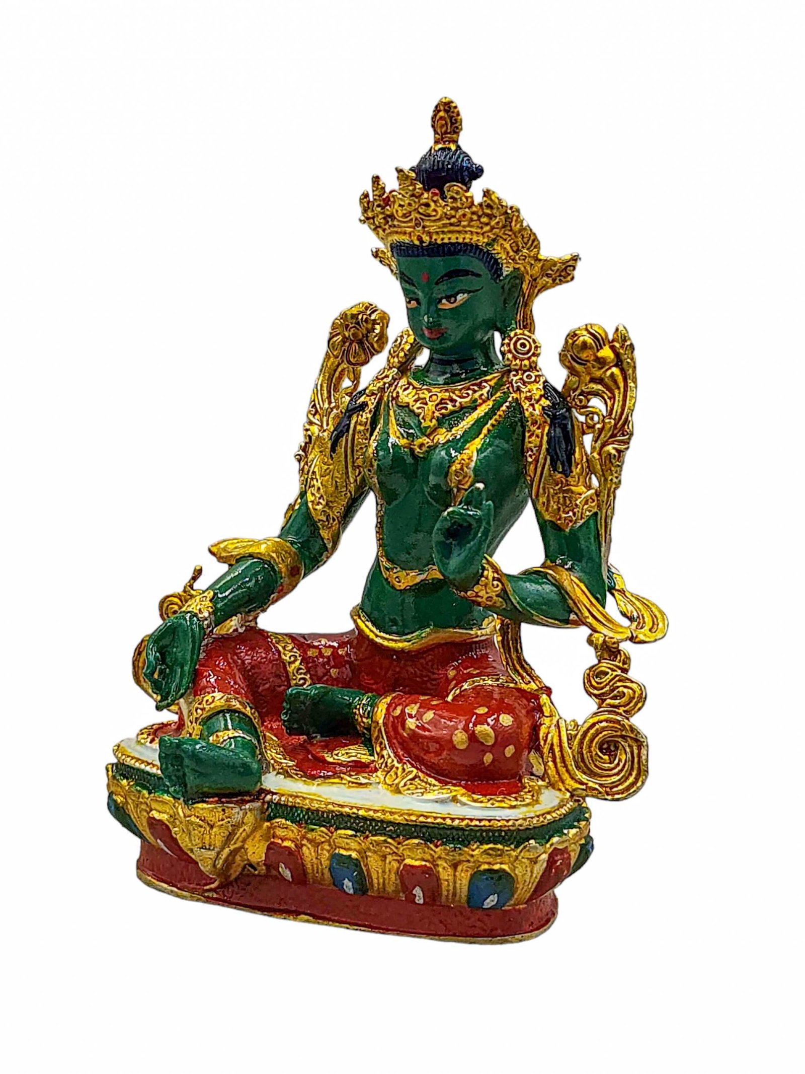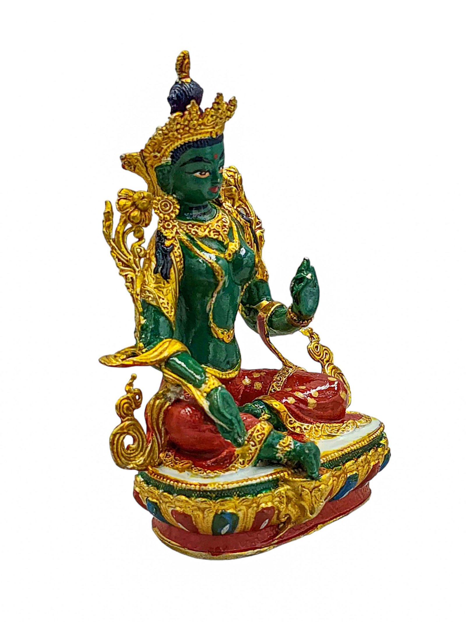 Green Tara, Buddhist Miniature Statue, High Quality, Traditional Color Finishing, High Quality , Goddess of Compassion, Protection, and Swift Action