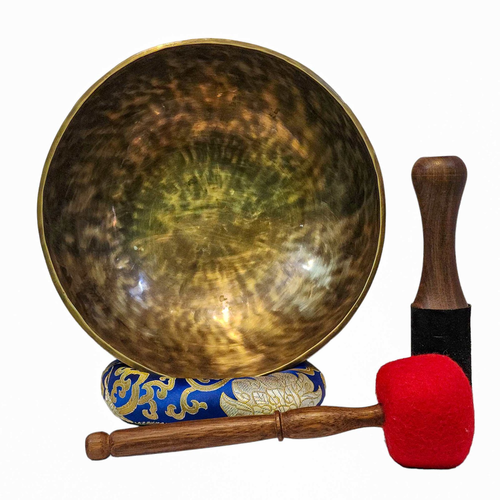 The Jambati Singing Bowl you are purchasing includes a cushion, a wooden playing mallet, and a felt-hitting mallet for playing the bowl. If you require additional accessories, you can browse the options above and purchase them separately. Should you have any further questions or need assistance, please don't hesitate to let us know. Read More