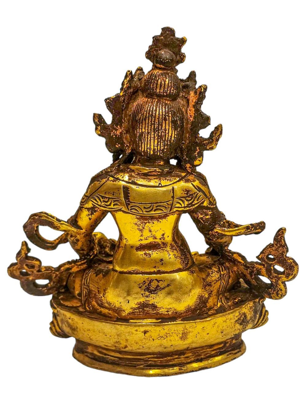 The Yellow Jambhala has full gold plated antique finishing. This finishing is a combination of fire mercury gold plating and antique finishing. This traditional technique involves the application of a genuine layer of gold onto the Yellow Jambhala using the time-honored process of mercury gold plating. Skilled artisans meticulously handle the amalgamation of gold with mercury, ensuring precise application and a truly authentic result. To enhance its charm further, the Yellow Jambhala undergoes an antique finishing process. This meticulous treatment adds a touch of age and character to the gold plating, creating a sense of antiquity. Through careful craftsmanship and the application of specialized techniques, the Yellow Jambhala acquires a beautifully aged appearance that adds depth and uniqueness to its overall aesthetic. Read More