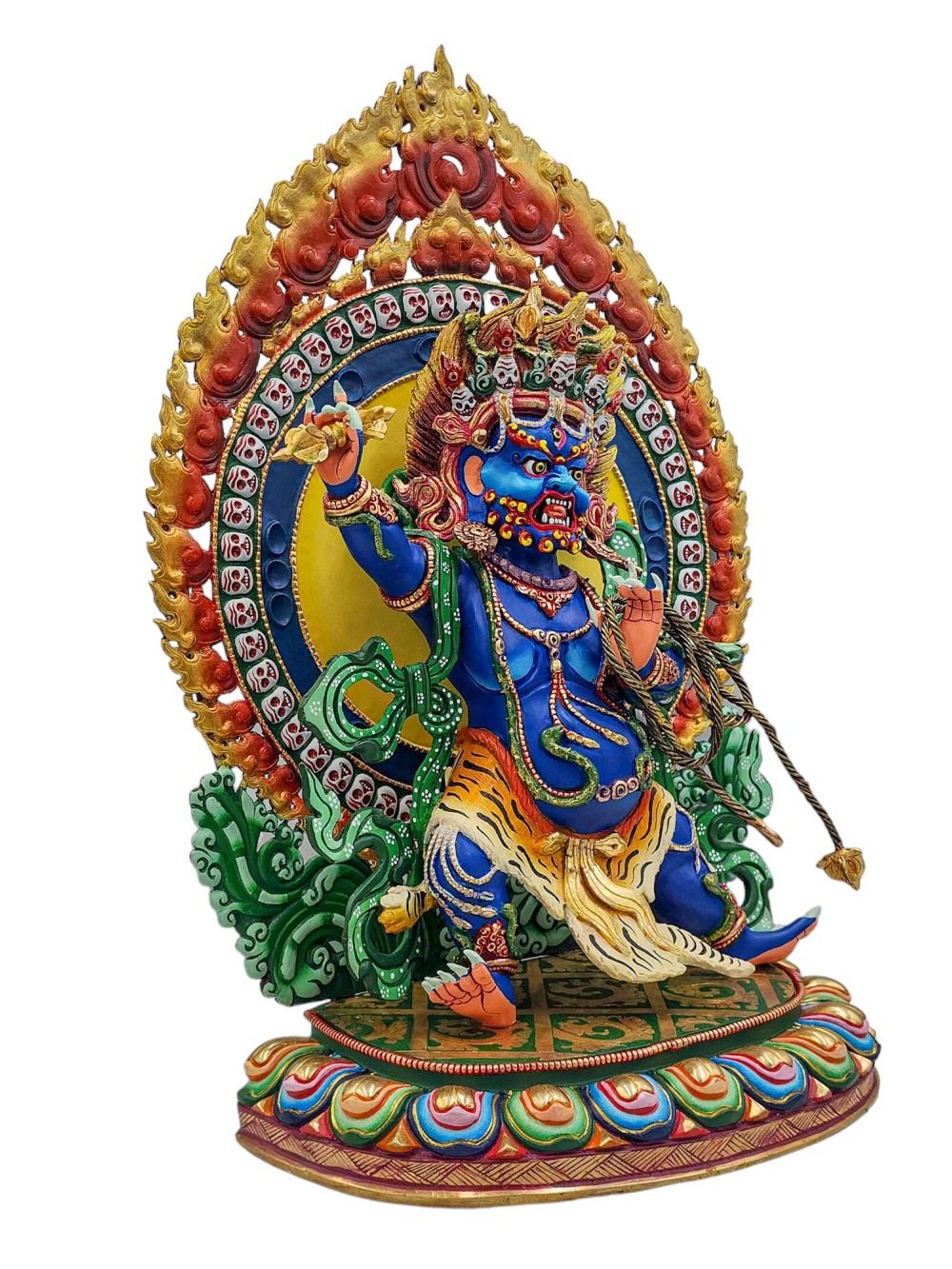 By employing this traditional coloring method, the Vajrapani is not only aesthetically pleasing but also maintains its cultural authenticity, paying homage to the rich traditions and practices associated with Buddhist art.