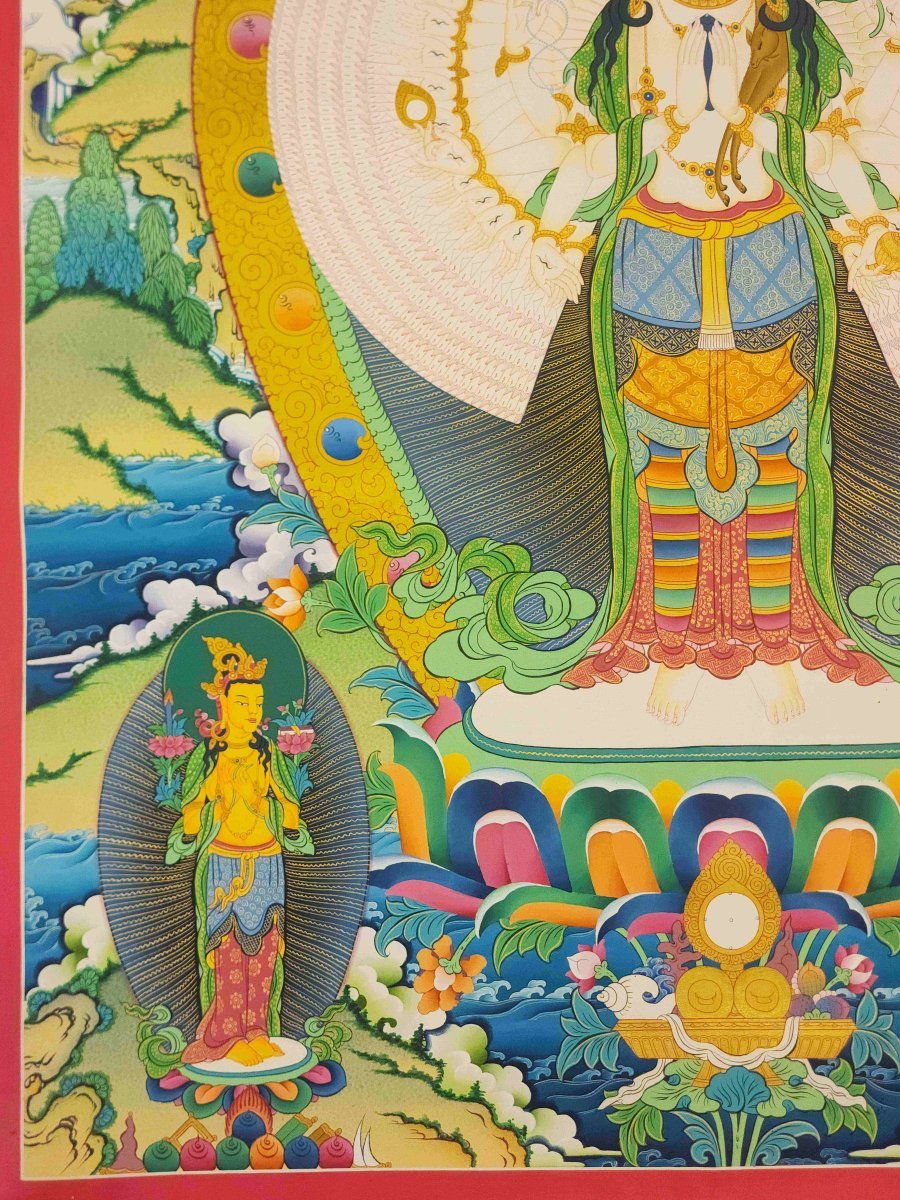 Sahasrabhuja Avalokitesvara, Buddhist Traditional Painting, Hand Painted, Real Gold |