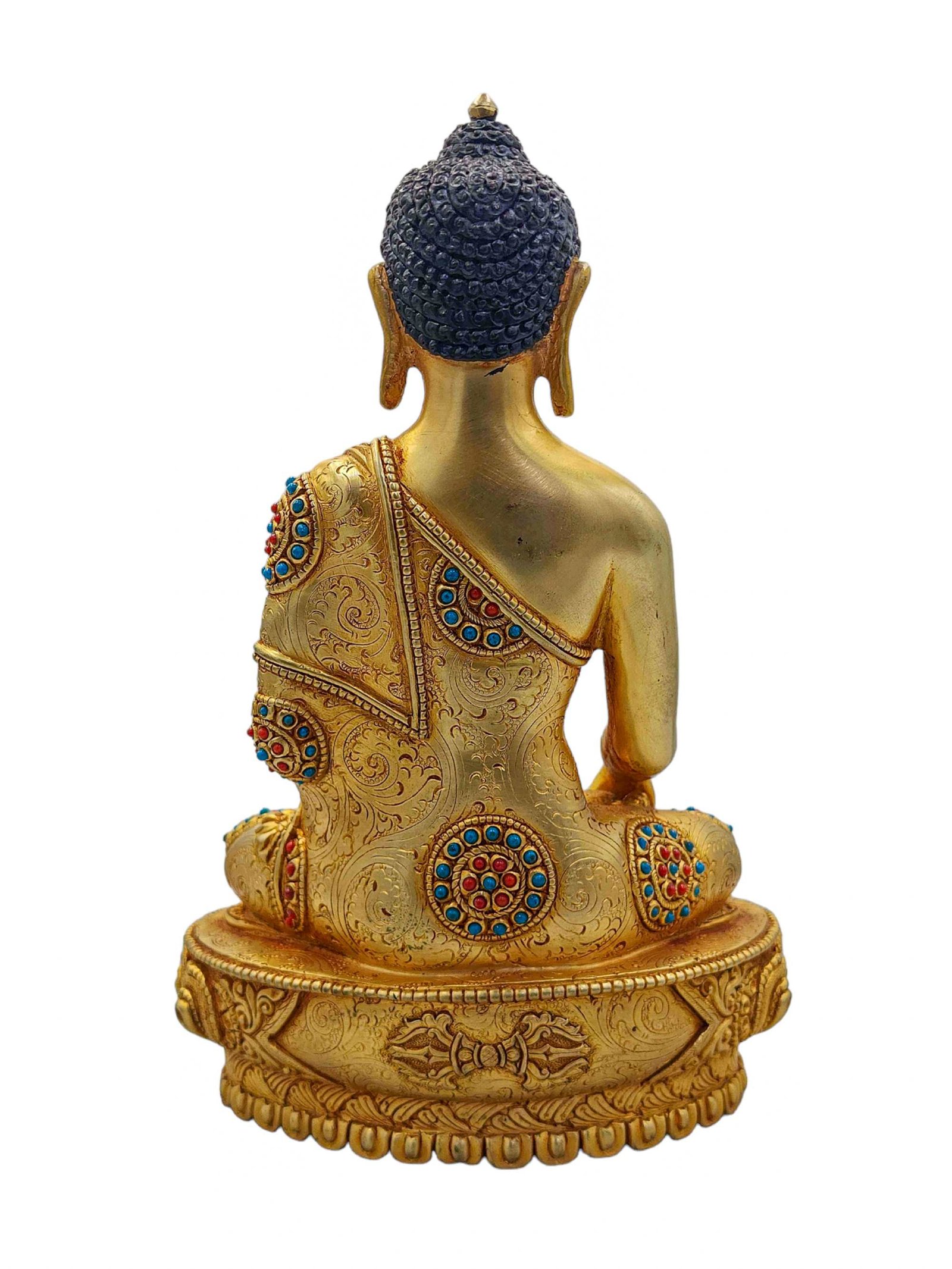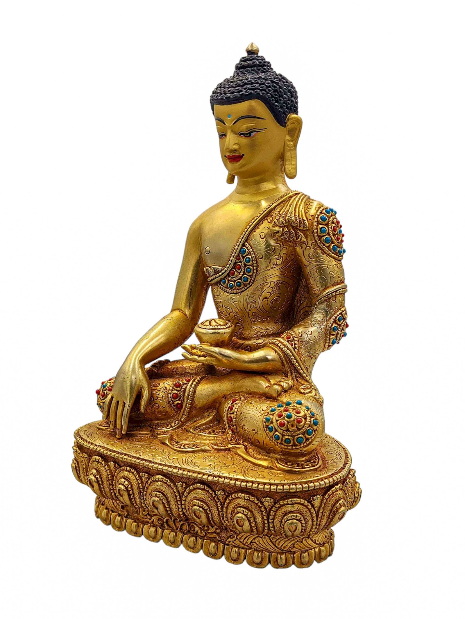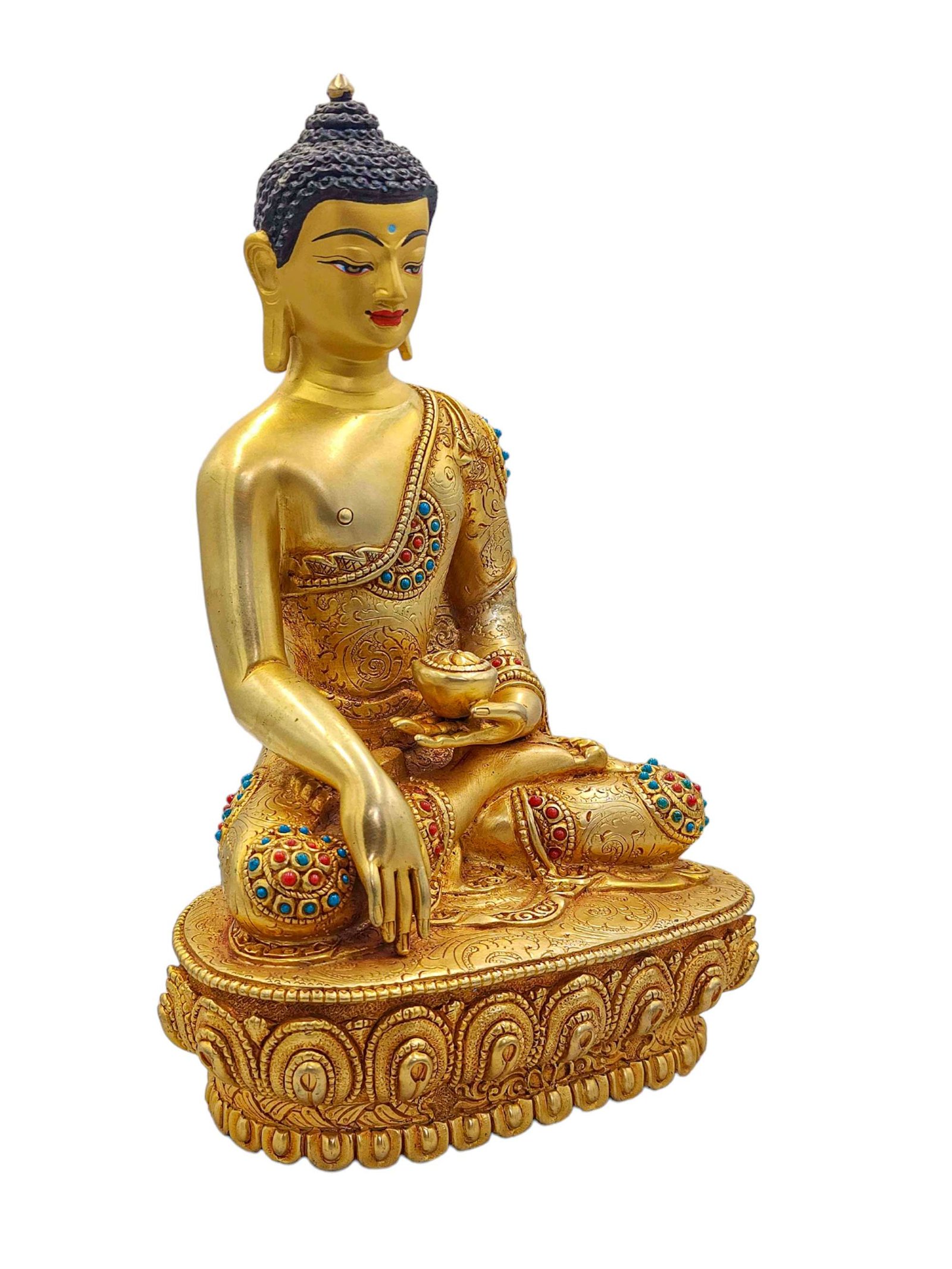 Shakyamuni Buddha, Buddhist Handmade Statue, Full Gold Plated and Face Painted, Stone Setting, High Quality , The Enlightened One and Teacher of Humanity