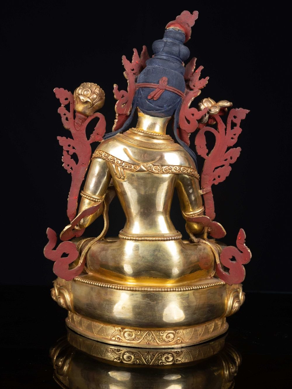 This White Tara is finished with full gold plating. also known as mercury gold plating or fire gold plating. This traditional technique involves the application of a genuine layer of gold onto the White Tara. Referred to as mercury gold plating, it is considered the correct and authentic form of gold plating in Nepal. Despite being more expensive than electroplating, this traditional mercury gold plating is gaining popularity again in Nepal. People are drawn to its authenticity, longevity, and the unmatched beauty it brings to the White Tara. The resurgence of interest in this traditional form of gold plating reflects a growing appreciation for the craftsmanship and cultural heritage of Nepal Read More