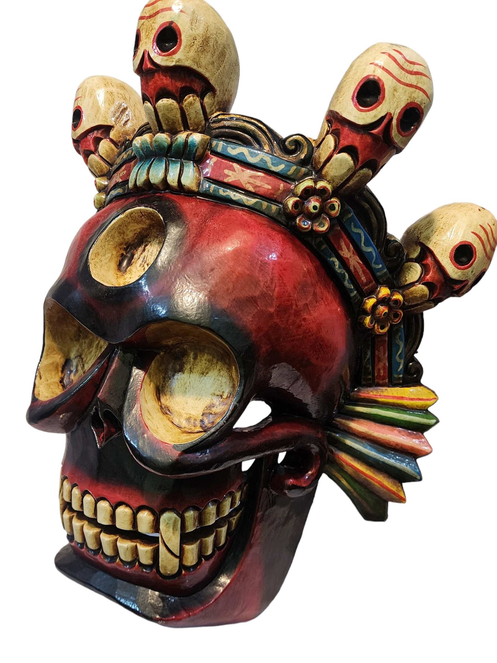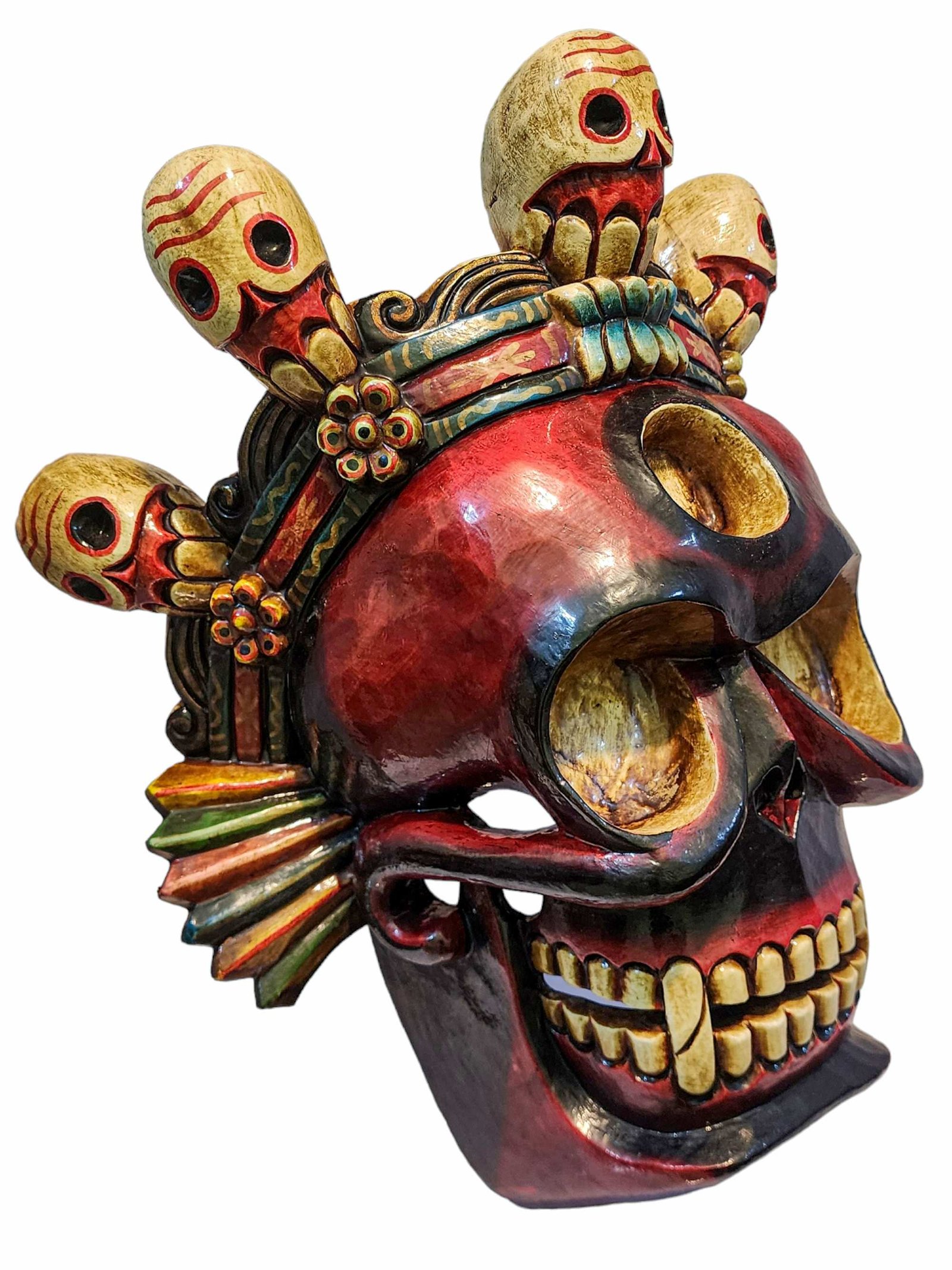 Skull Or Citipati, Handmade Wooden Mask, Wall Hanging, Painted Red, Poplar Wood , Lords of the Cemetery, Guardians of Transcendence and Impermanence