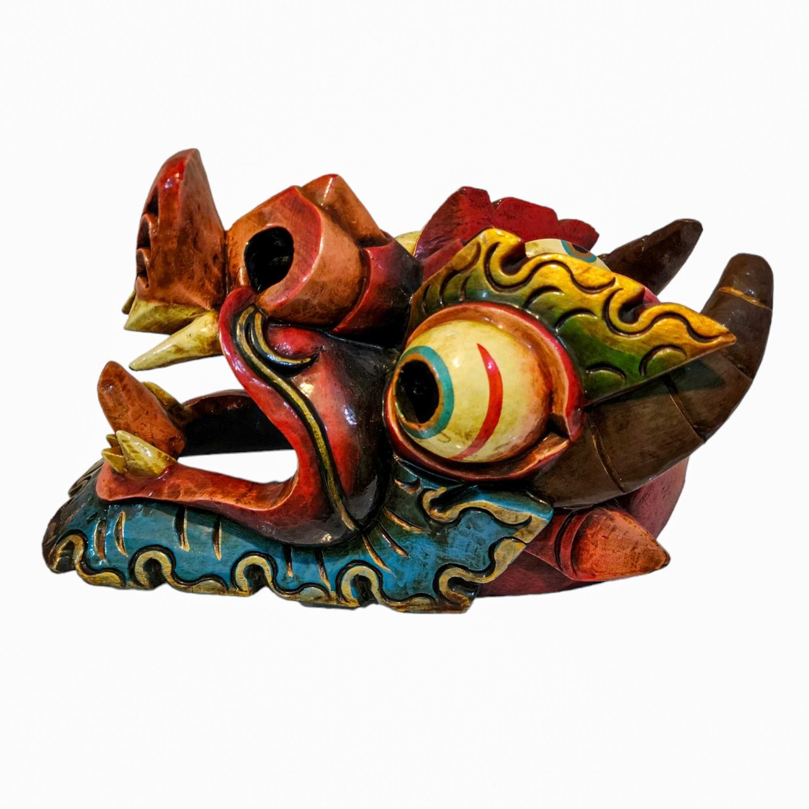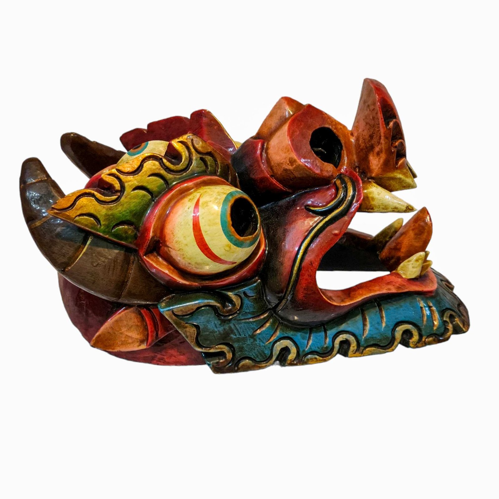 this Dragon mask is Nepali handmade mask and we are Introducing our exquisite collection of Nepali handmade hand-carved wooden Buddhist masks and wall hangings, meticulously crafted by skilled artisans. Each piece in this collection reflects the rich cultural heritage and spiritual significance of Nepal. These masks and wall hangings are not just decorative pieces but hold deep symbolic meaning, making them perfect for adding an authentic touch to your living spaces or meditation rooms. Read More