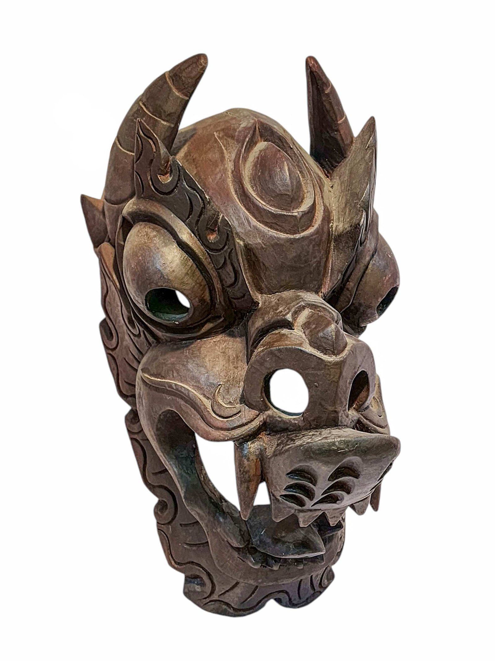 this Dragon mask is Nepali handmade mask and we are Introducing our exquisite collection of Nepali handmade hand-carved wooden Buddhist masks and wall hangings, meticulously crafted by skilled artisans. Each piece in this collection reflects the rich cultural heritage and spiritual significance of Nepal. These masks and wall hangings are not just decorative pieces but hold deep symbolic meaning, making them perfect for adding an authentic touch to your living spaces or meditation rooms. Read More