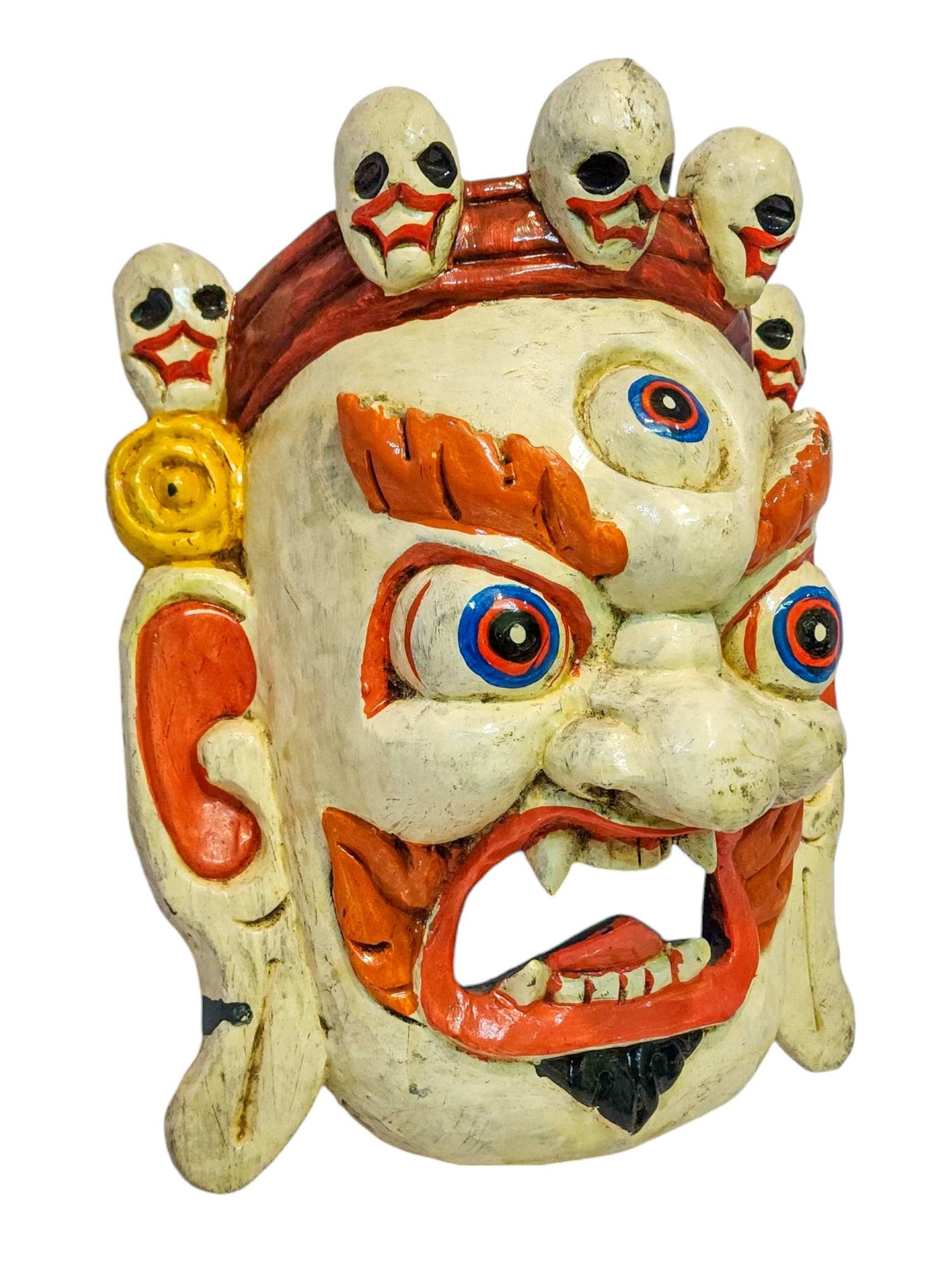 Bhairav, Handmade Wooden Mask, Wall Hanging, Painted, Poplar Wood, White Mahakala , Peaceful protector, bestowing wealth and dispelling poverty