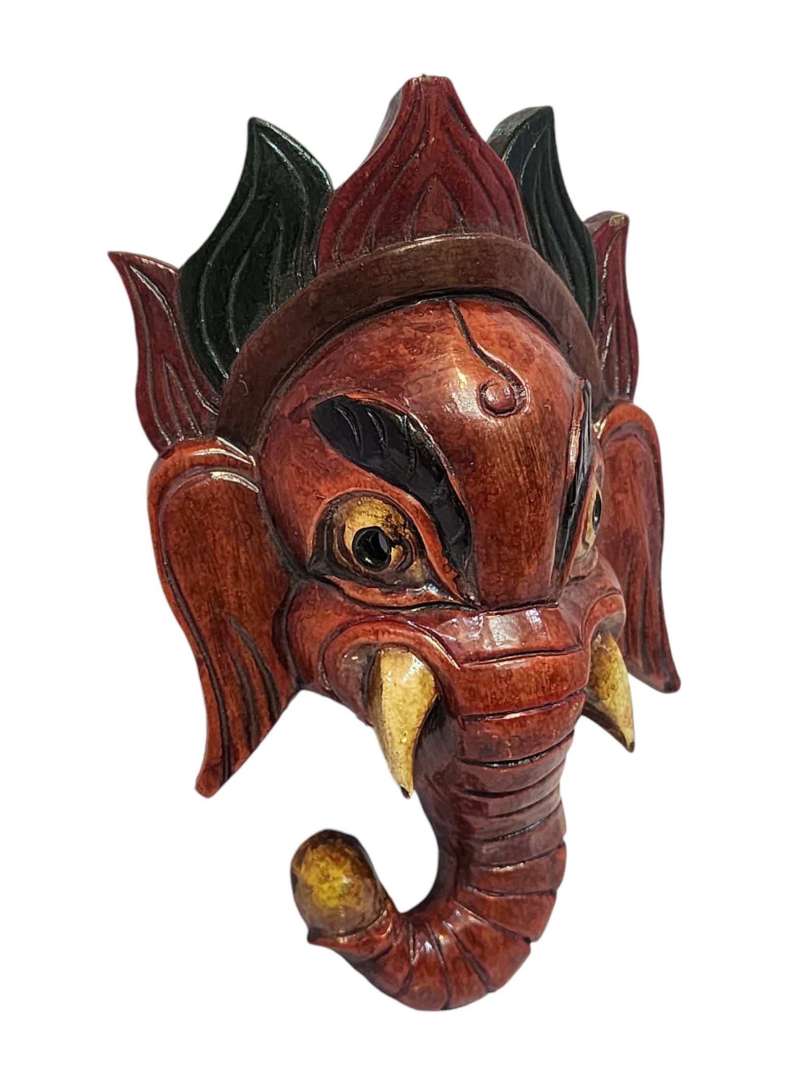 this Ganesh mask is Nepali handmade mask and we are Introducing our exquisite collection of Nepali handmade hand-carved wooden Buddhist masks and wall hangings, meticulously crafted by skilled artisans. Each piece in this collection reflects the rich cultural heritage and spiritual significance of Nepal. These masks and wall hangings are not just decorative pieces but hold deep symbolic meaning, making them perfect for adding an authentic touch to your living spaces or meditation rooms. Read More