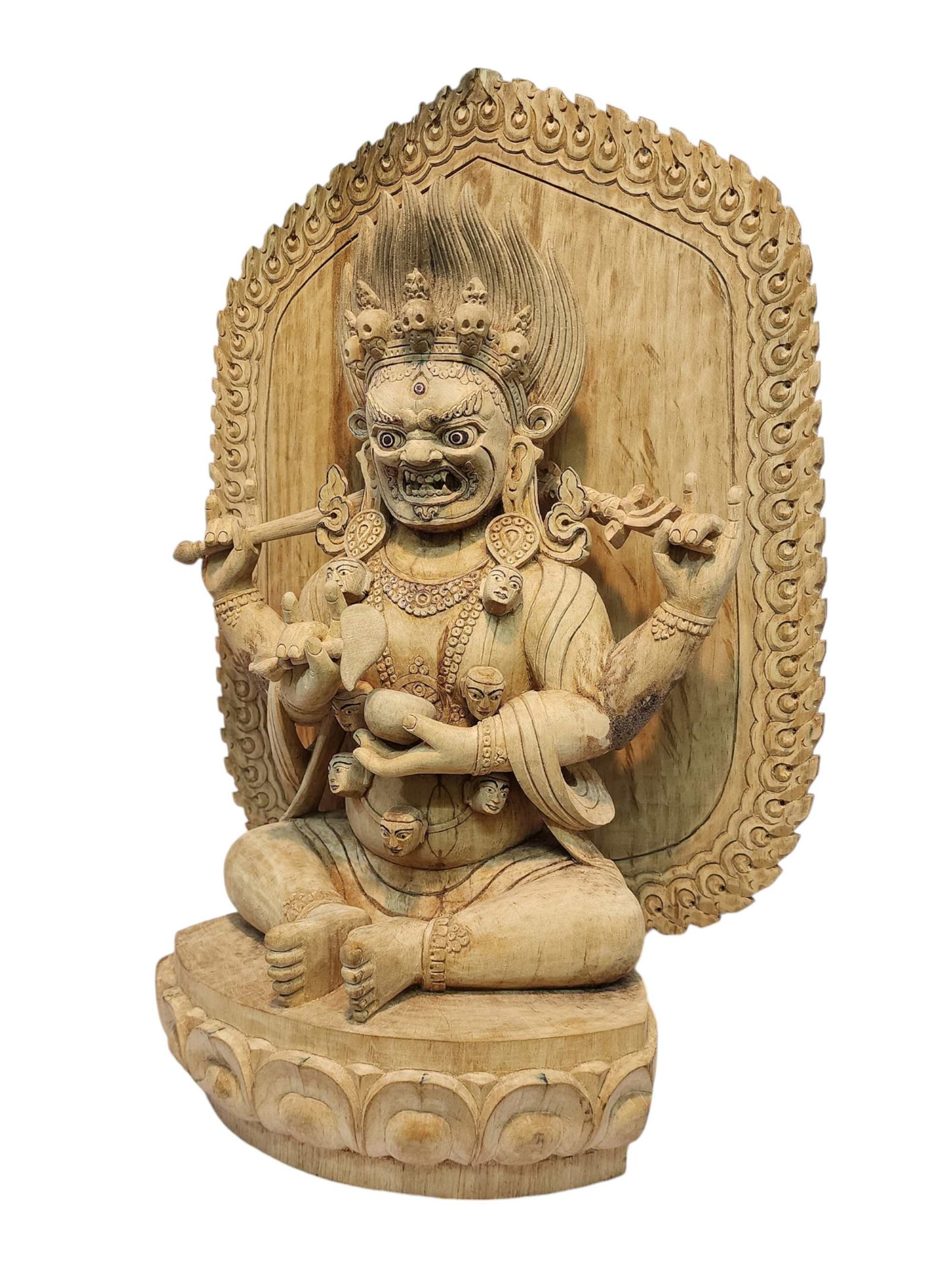 Bhairav, 4 Arm Mahakala, Handmade Wooden Mask, Wall Hanging, Painted, Poplar Wood , Four-armed protector, destroys obstacles and negativity
