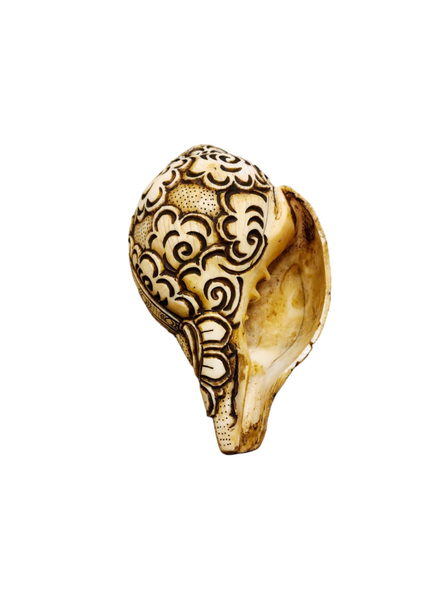 Conch Shell with Amoghasiddhi Buddha Hand Carved , Victory Over Fear, Wisdom, and Compassion for Enlightenment