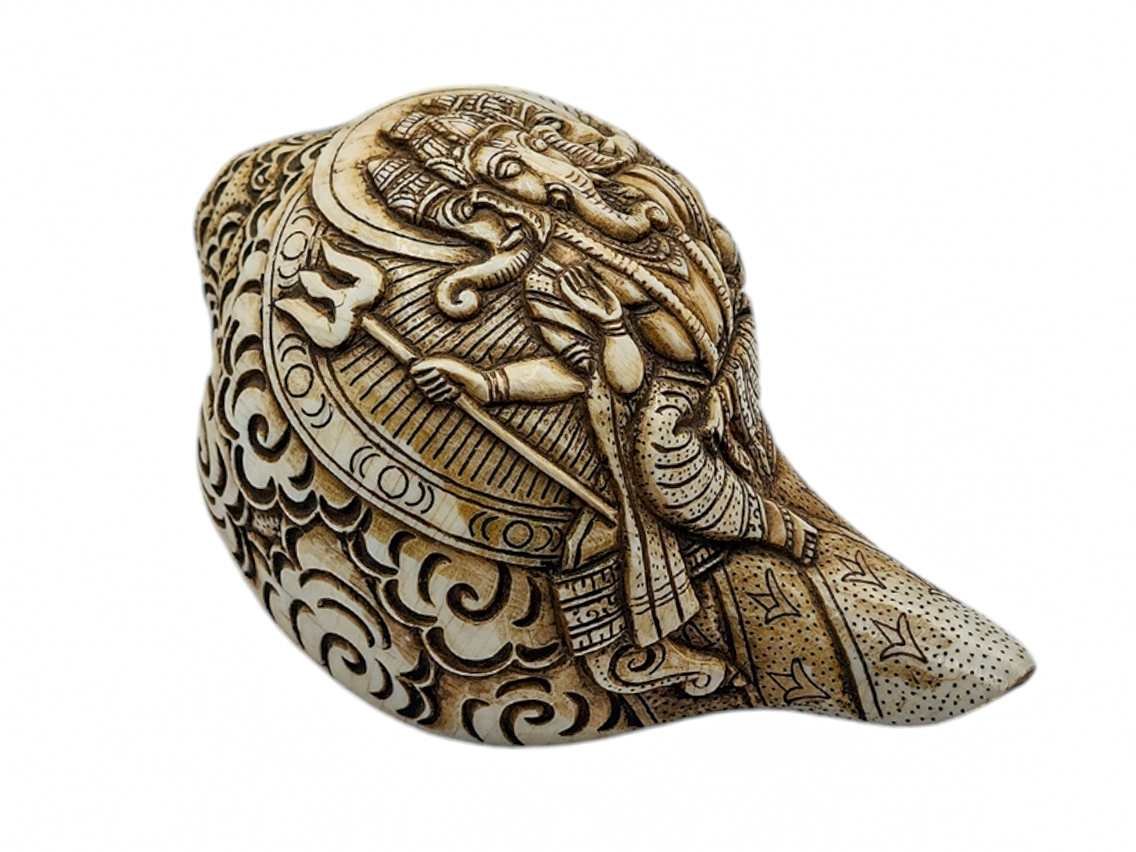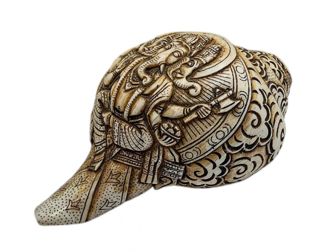Conch Shell with Ganesh Hand Carved , Remover of Obstacles, God of Wisdom and New Beginnings