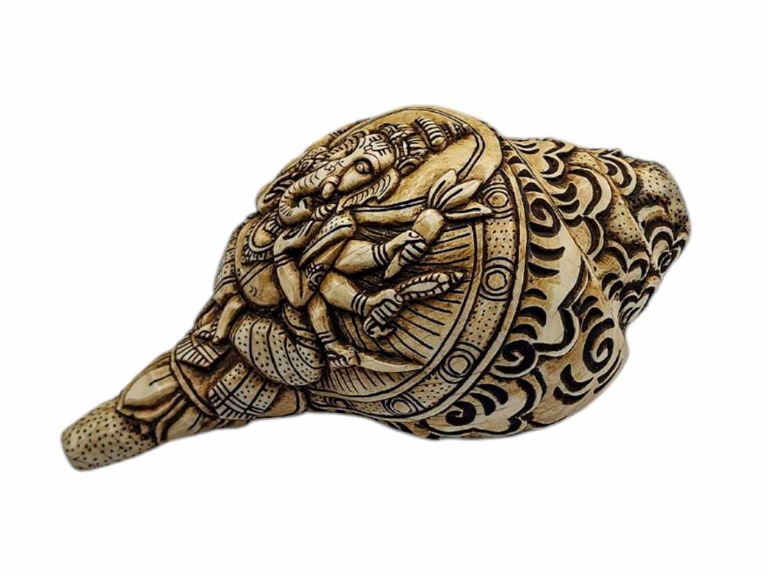 Conch Shell with Ganesh Hand Carved , Remover of Obstacles, God of Wisdom and New Beginnings