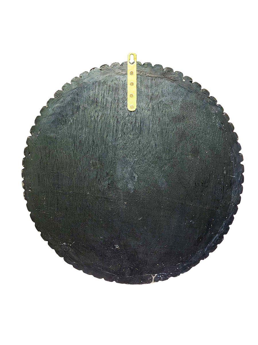 Tibetan Wooden Wall Hanging Double Dorje Design At Center, with Asthamangala Thangka Color Finishing, Hand Craved |