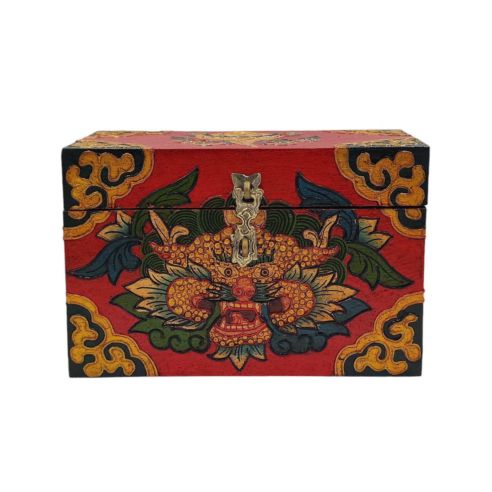 A Tibetan wooden box is a handcrafted storage container made from wood and often adorned with intricate Tibetan motifs and vibrant colors. These boxes are typically crafted by skilled artisans using traditional techniques passed down through generations. The decorations on the box usually include symbols of good fortune, such as lotus flowers, endless knots, dragons, or mythical creatures, and are painted in vivid hues like red, blue, green, and gold. These motifs not only add to the aesthetic appeal but also carry significant cultural and spiritual meanings in Tibetan Buddhism. Read More