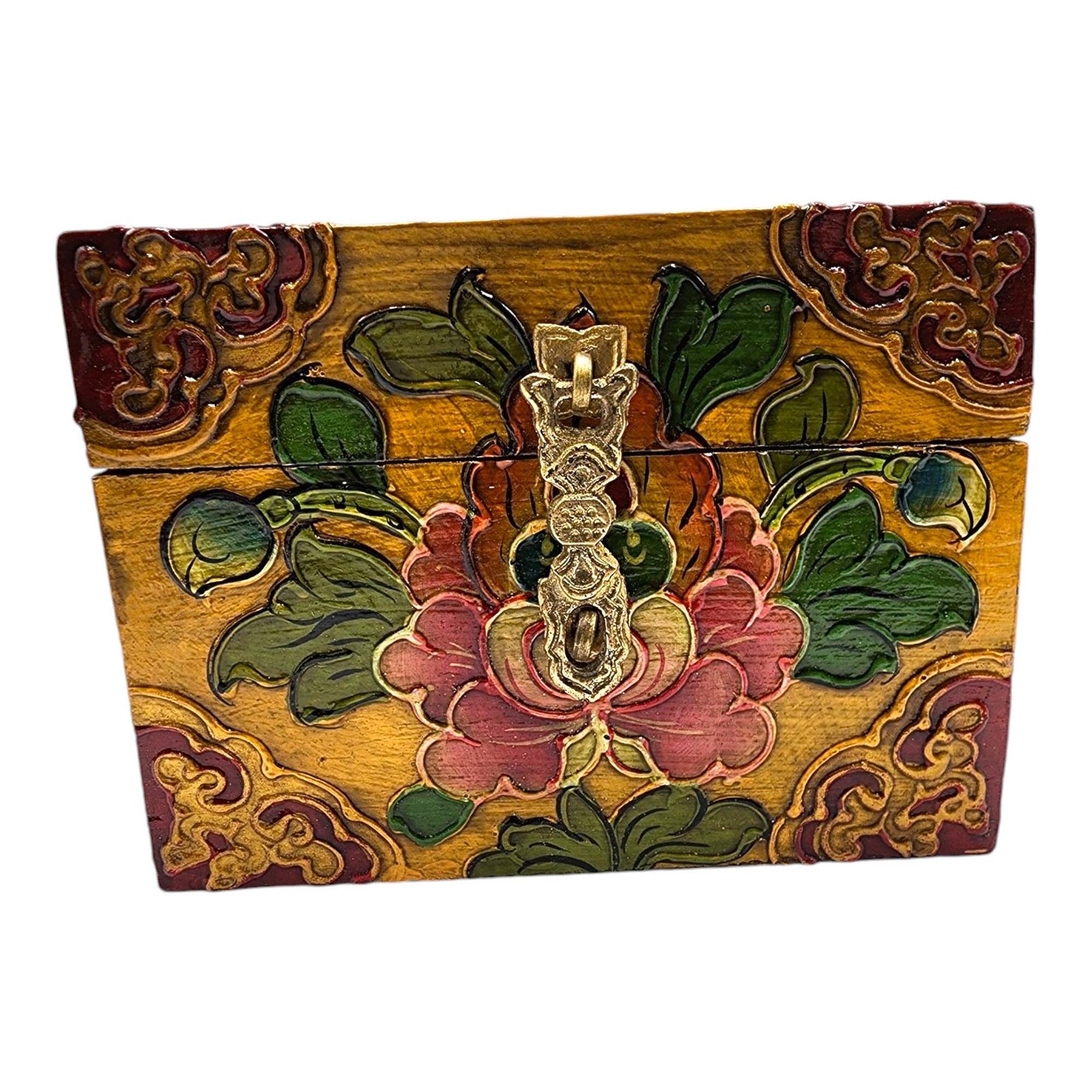 Buddhist Wooden Box, Tibetan Style with Traditional Colors |