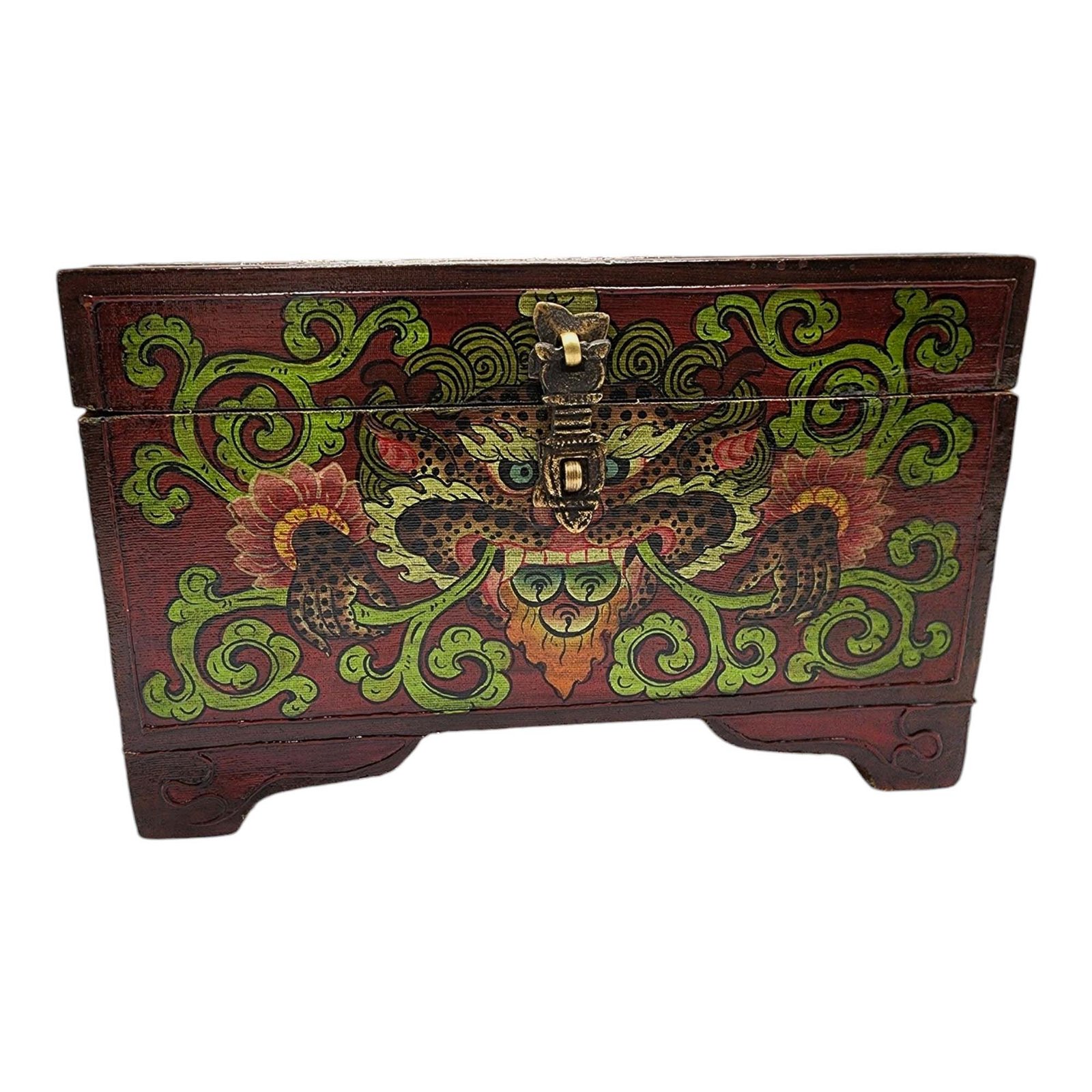 Buddhist Wooden Box, Tibetan Style with Traditional Colors |