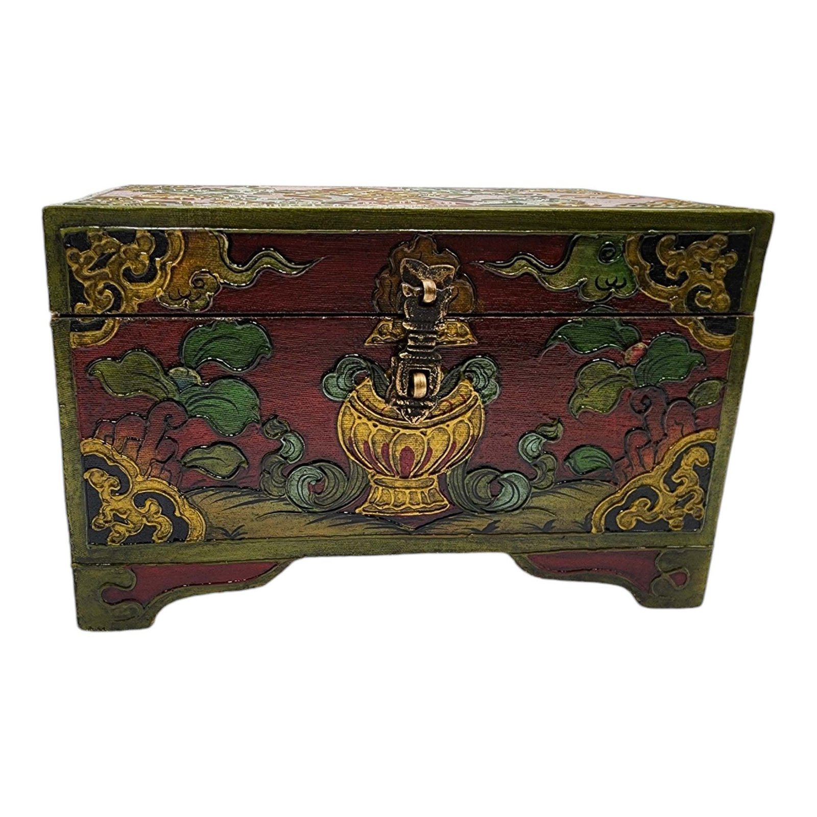 Buddhist Wooden Box, Tibetan Style with Traditional Colors |