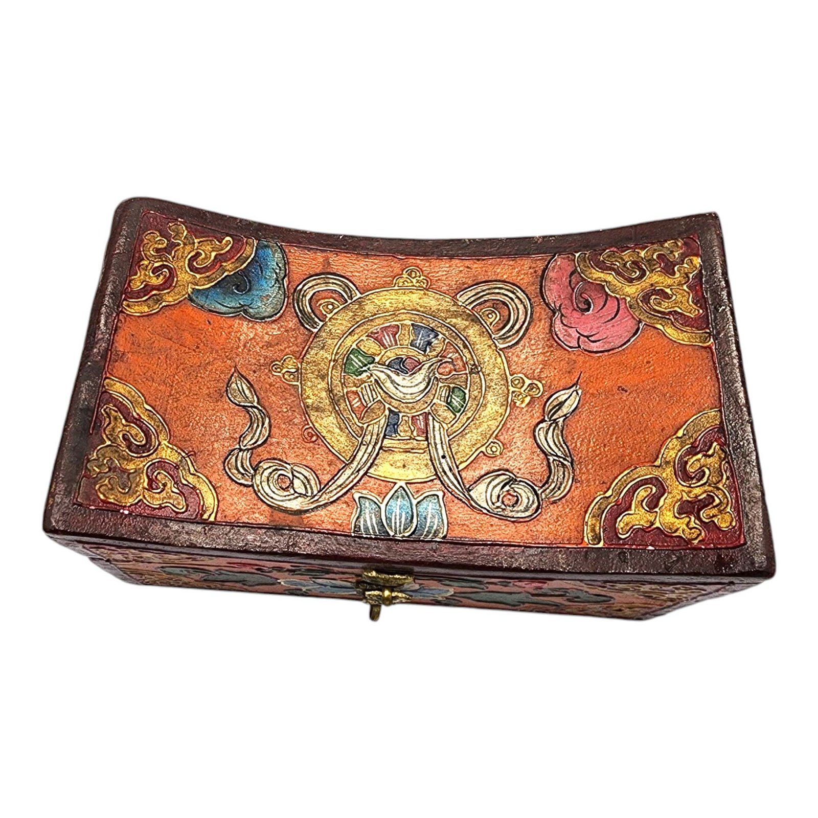 Buddhist Wooden Box, Tibetan Style with Traditional Colors |