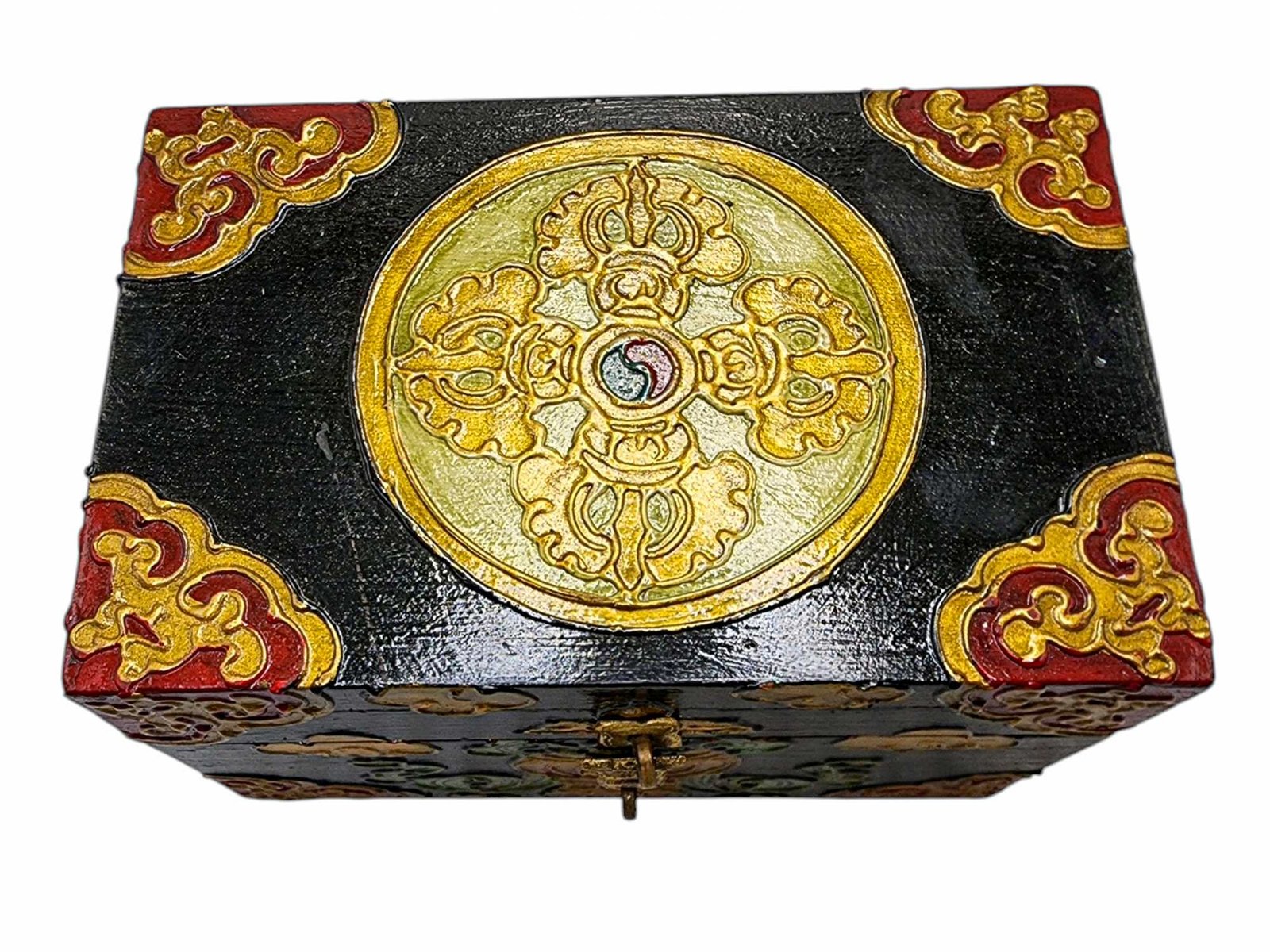 Buddhist Wooden Box, Tibetan Style with Traditional Colors |