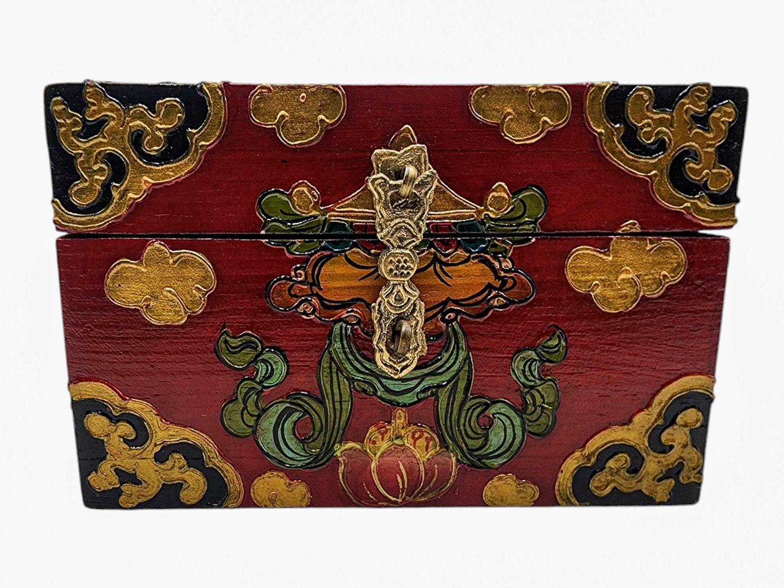 Buddhist Wooden Box, Tibetan Style with Traditional Colors |