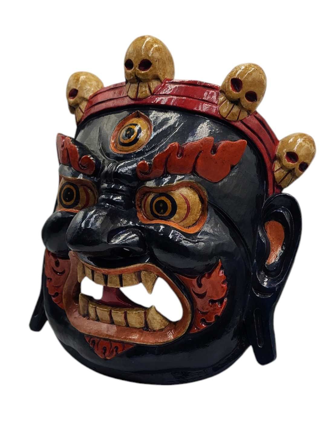 Bhairav, Handmade Wooden Mask, Wall Hanging, Painted, Poplar Wood , Wrathful Shiva, Guardian of Power and Destruction