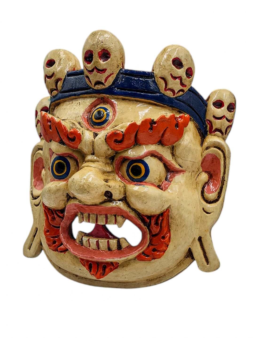 Bhairav, Handmade Wooden Mask, Wall Hanging, Painted, Poplar Wood , Wrathful Shiva, Guardian of Power and Destruction