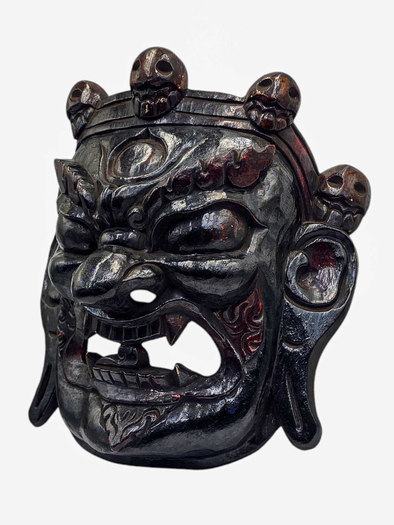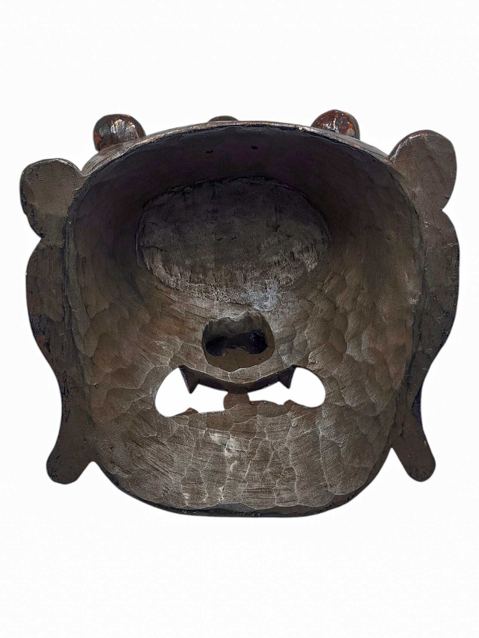 Bhairav, Handmade Wooden Mask, Wall Hanging, Painted, Poplar Wood , Wrathful Shiva, Guardian of Power and Destruction
