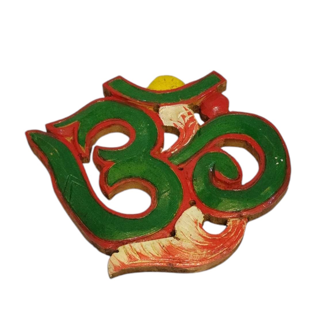 Wooden Om -Painted Green, Haldu Wood , The primordial sound, representing the universe, creation, and the essence of all existence