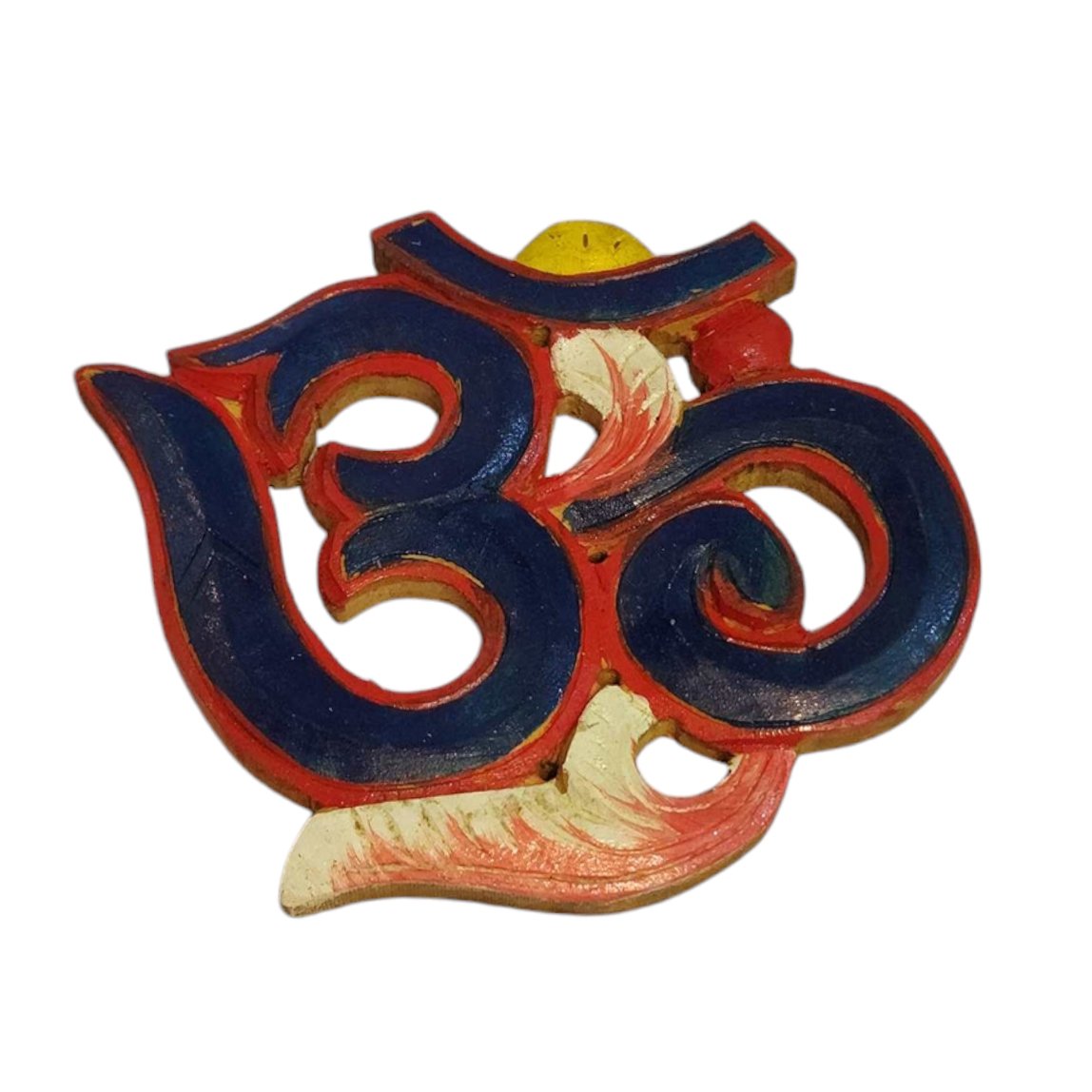 Wooden Om -Painted Blue, Haldu Wood , The primordial sound, representing the universe, creation, and the essence of all existence