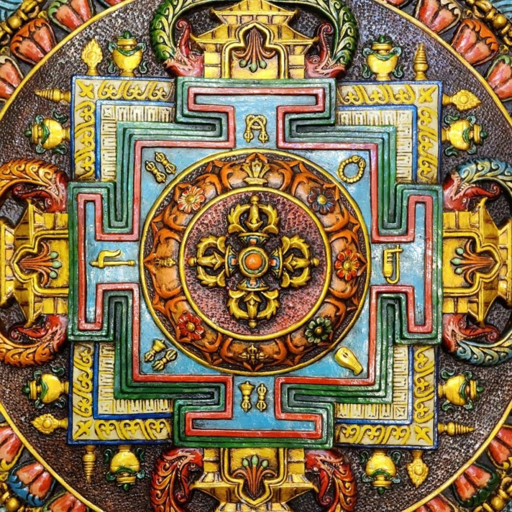 Wooden Wall Hanging, with Double Dorje and Mandala, Painted, Hand Carved |