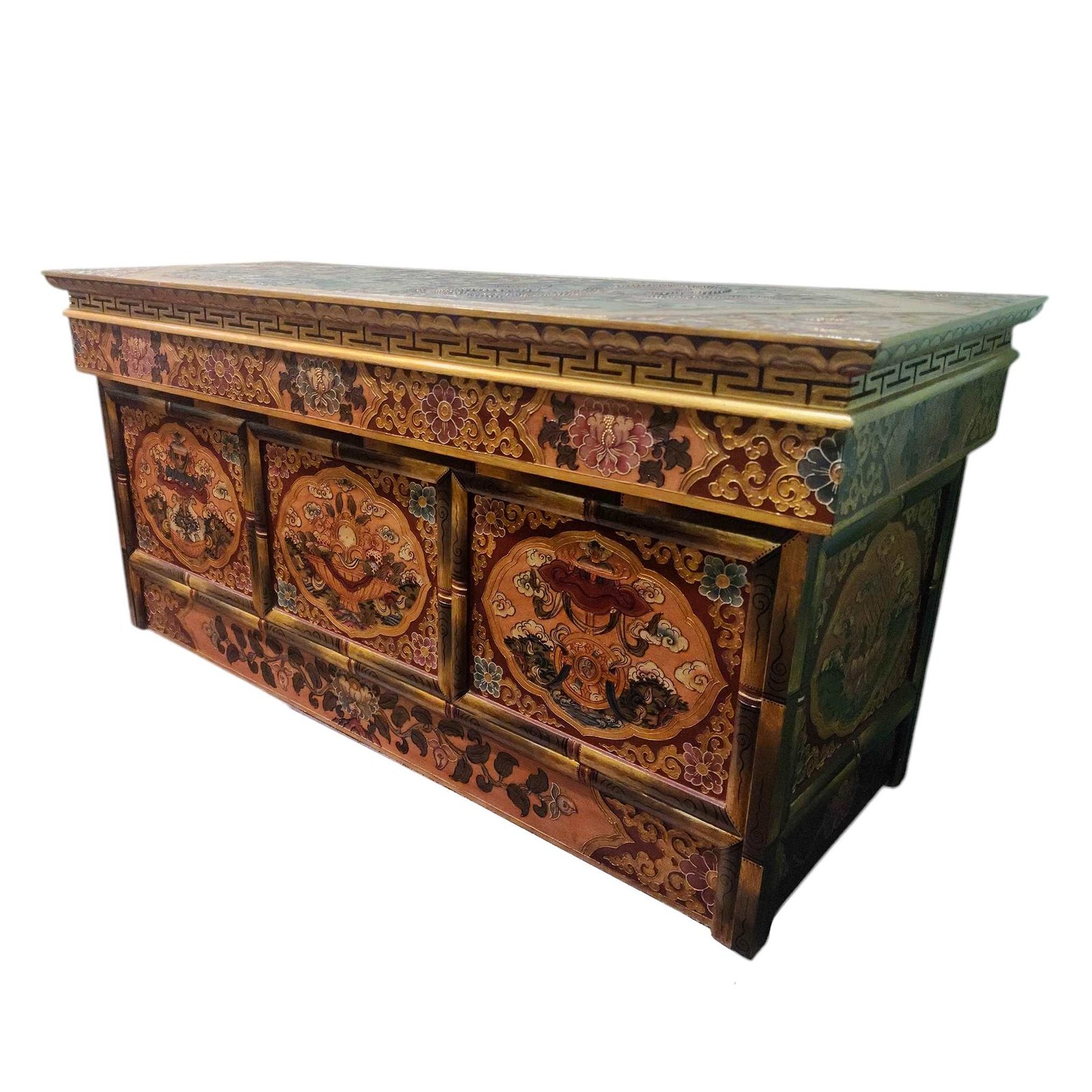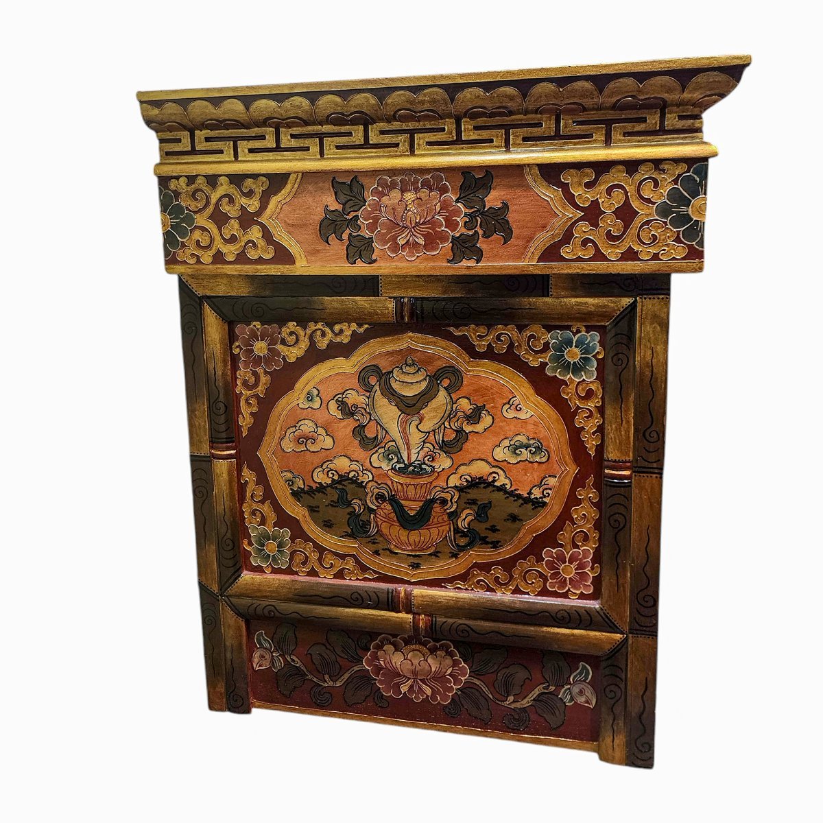 Large Tibetan Foldable Meditational Table Ashtamangala Design, Wooden, Painted, Hand Carved |