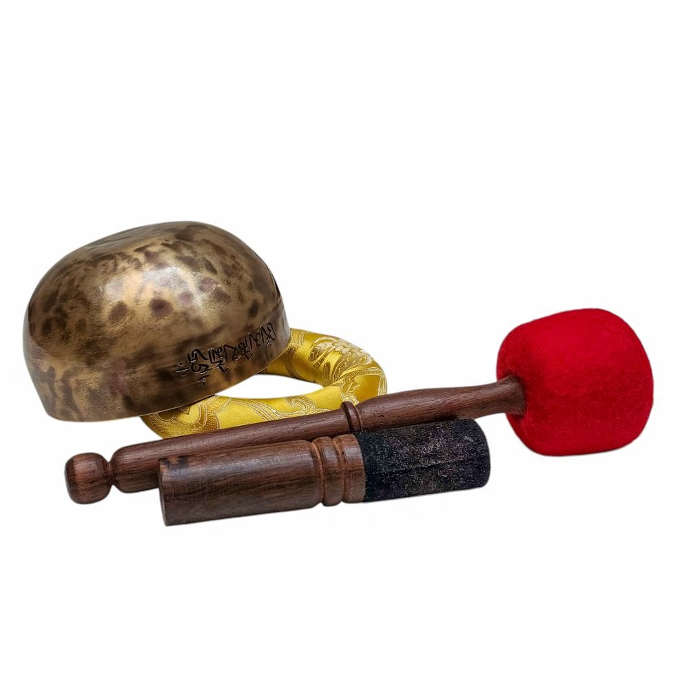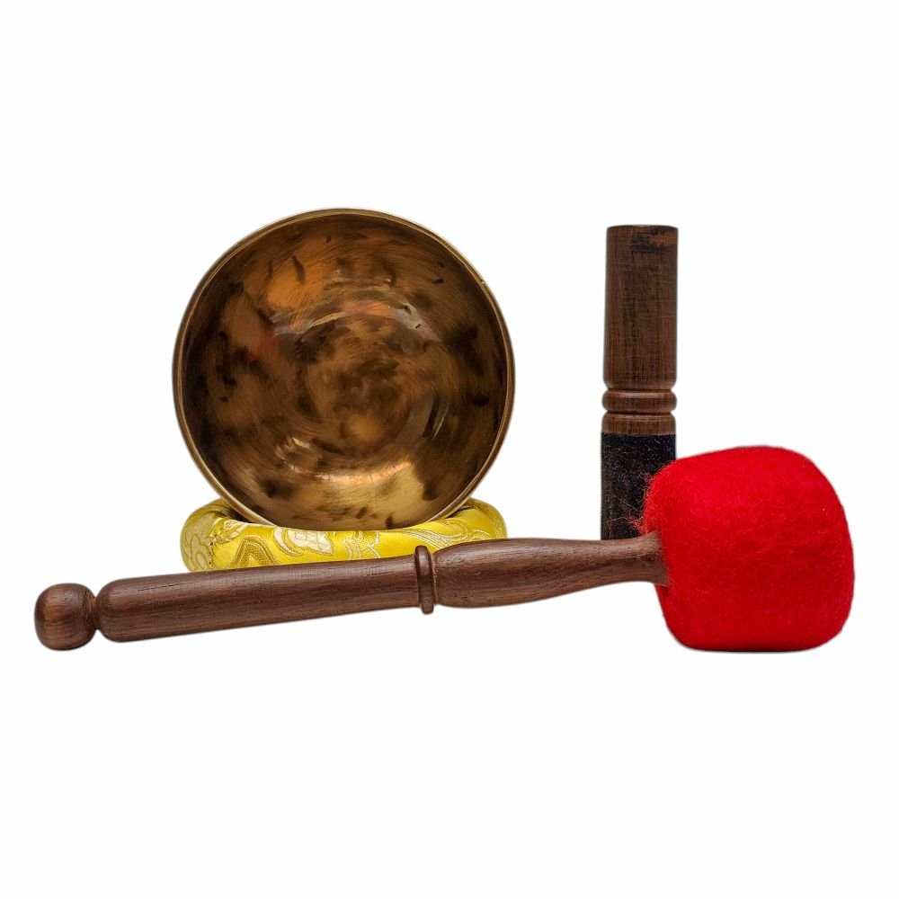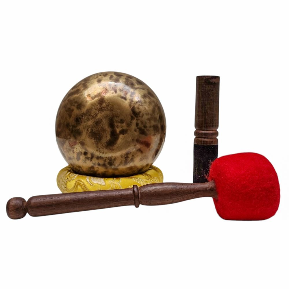 The Jambati Singing Bowl you are purchasing includes a cushion, a wooden playing mallet, and a felt-hitting mallet for playing the bowl. If you require additional accessories, you can browse the options above and purchase them separately. Should you have any further questions or need assistance, please don't hesitate to let us know. Read More