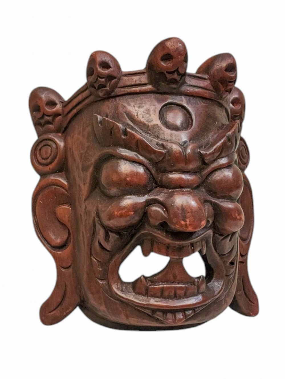 Bhairav, Handmade Wooden Mask, Wall Hanging, Painted, Poplar Wood , Wrathful Shiva, Guardian of Power and Destruction