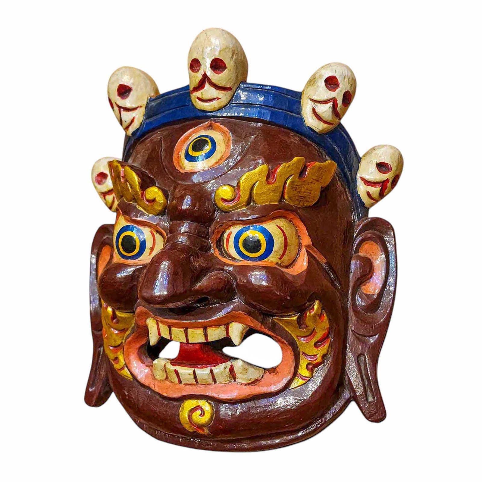 Bahirav, Handmade Wooden Mask, Wall Hanging, Painted, Poplar Wood , Wrathful Shiva, Guardian of Power and Destruction