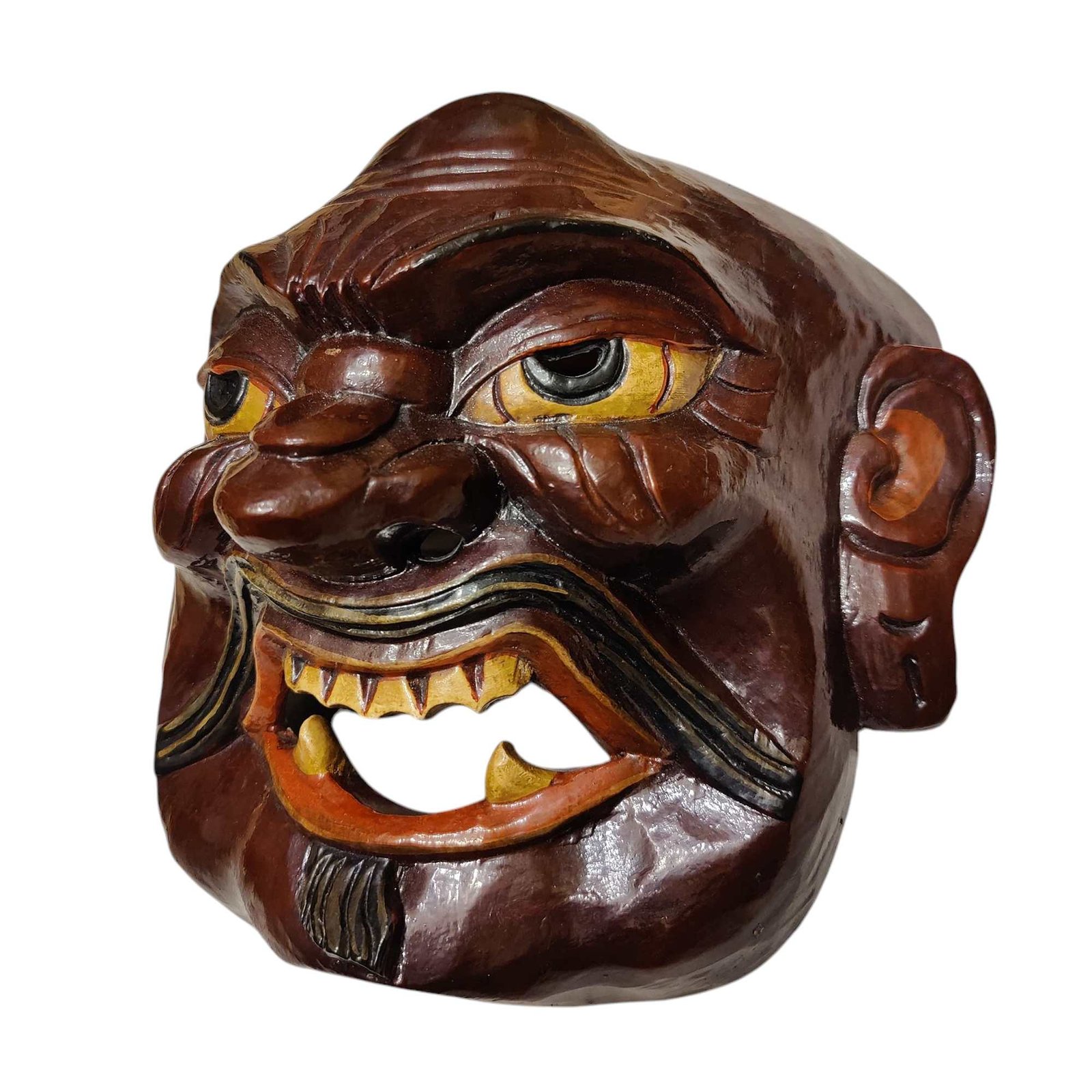 this Wooden Mask mask is Nepali handmade mask and we are Introducing our exquisite collection of Nepali handmade hand-carved wooden Buddhist masks and wall hangings, meticulously crafted by skilled artisans. Each piece in this collection reflects the rich cultural heritage and spiritual significance of Nepal. These masks and wall hangings are not just decorative pieces but hold deep symbolic meaning, making them perfect for adding an authentic touch to your living spaces or meditation rooms. Read More