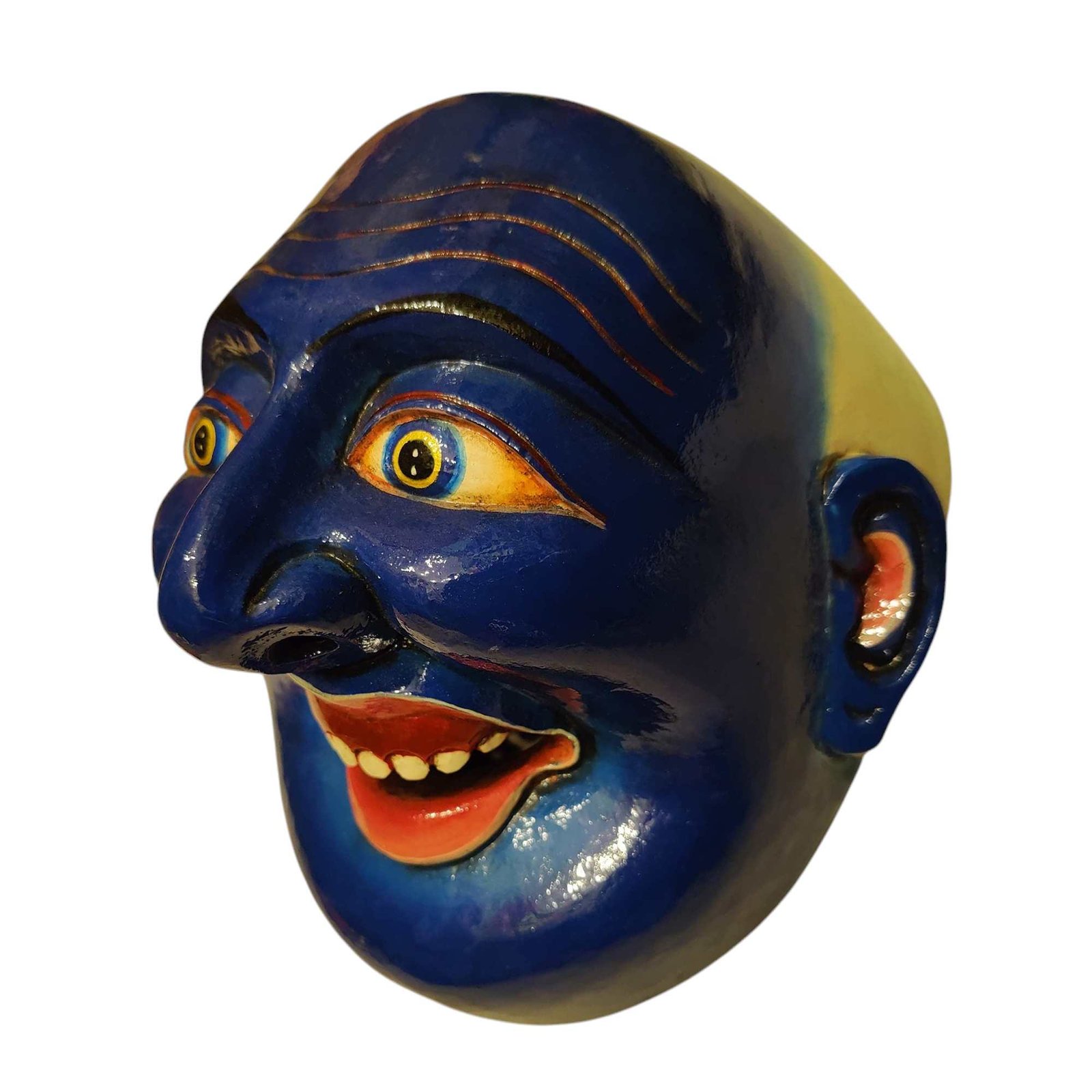 this Wooden Mask mask is Nepali handmade mask and we are Introducing our exquisite collection of Nepali handmade hand-carved wooden Buddhist masks and wall hangings, meticulously crafted by skilled artisans. Each piece in this collection reflects the rich cultural heritage and spiritual significance of Nepal. These masks and wall hangings are not just decorative pieces but hold deep symbolic meaning, making them perfect for adding an authentic touch to your living spaces or meditation rooms. Read More