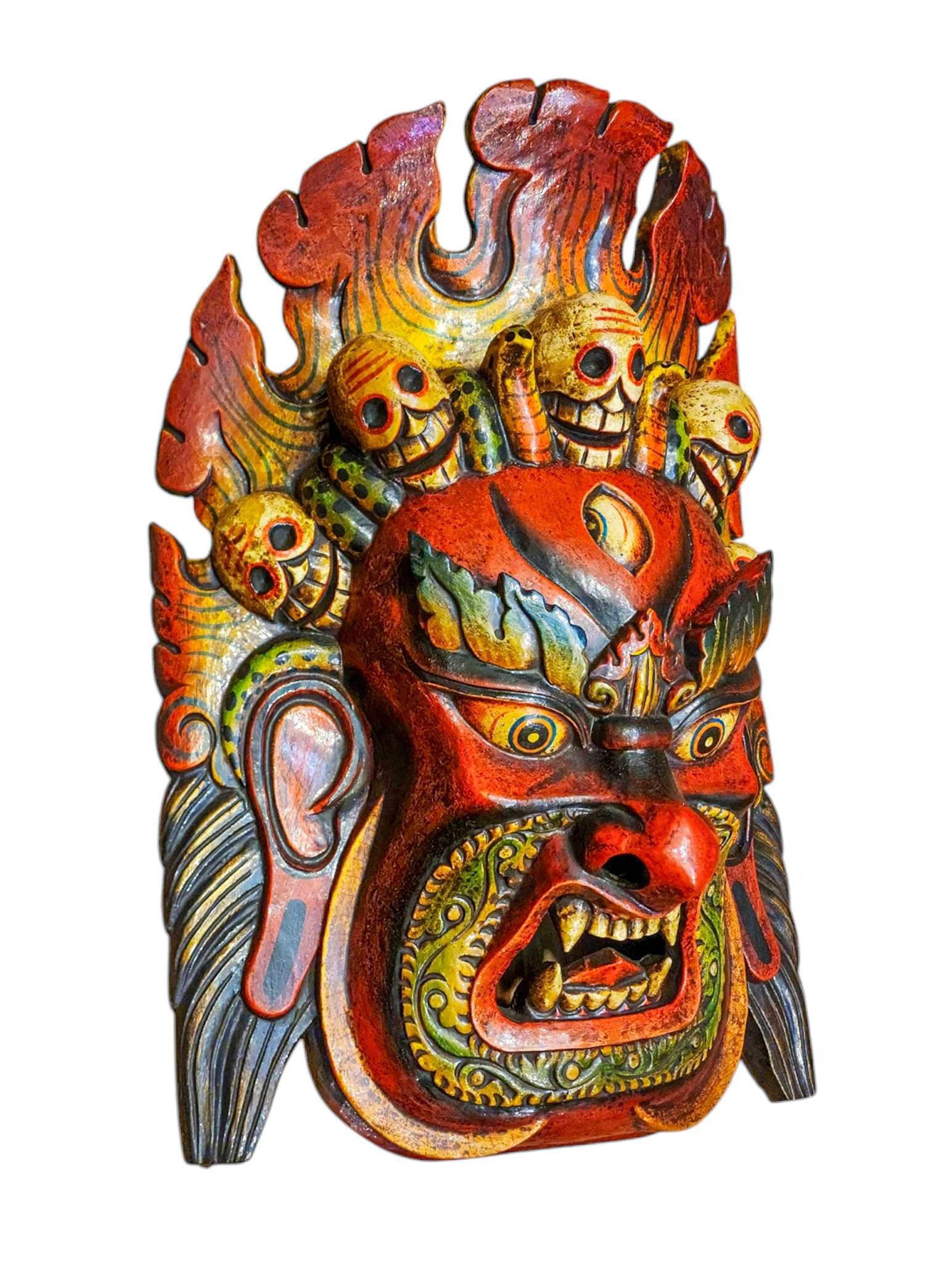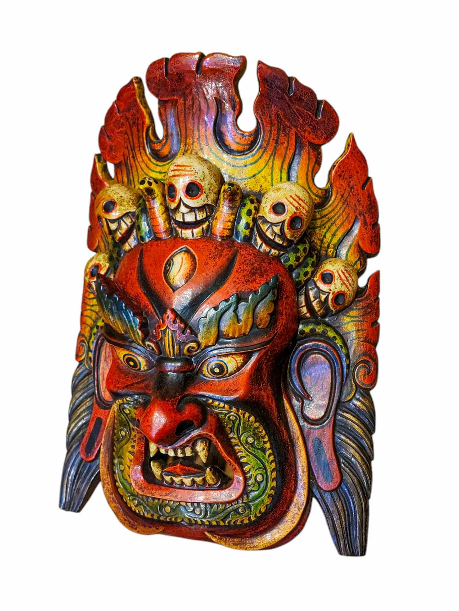 Fire Bhairav, Handmade Wooden Mask, Wall Hanging, Painted, Poplar Wood, High Quality , Wrathful Shiva, Guardian of Power and Destruction