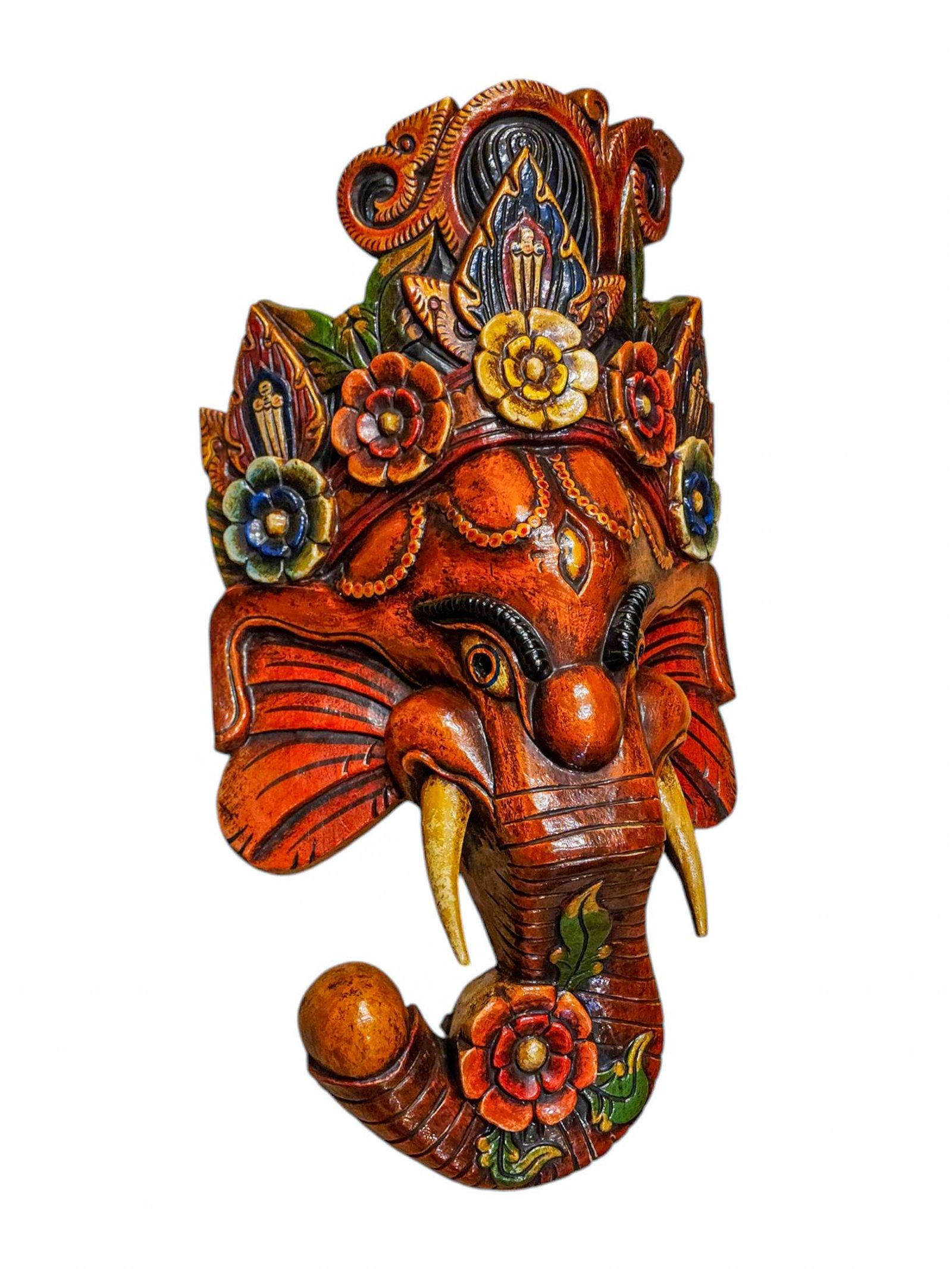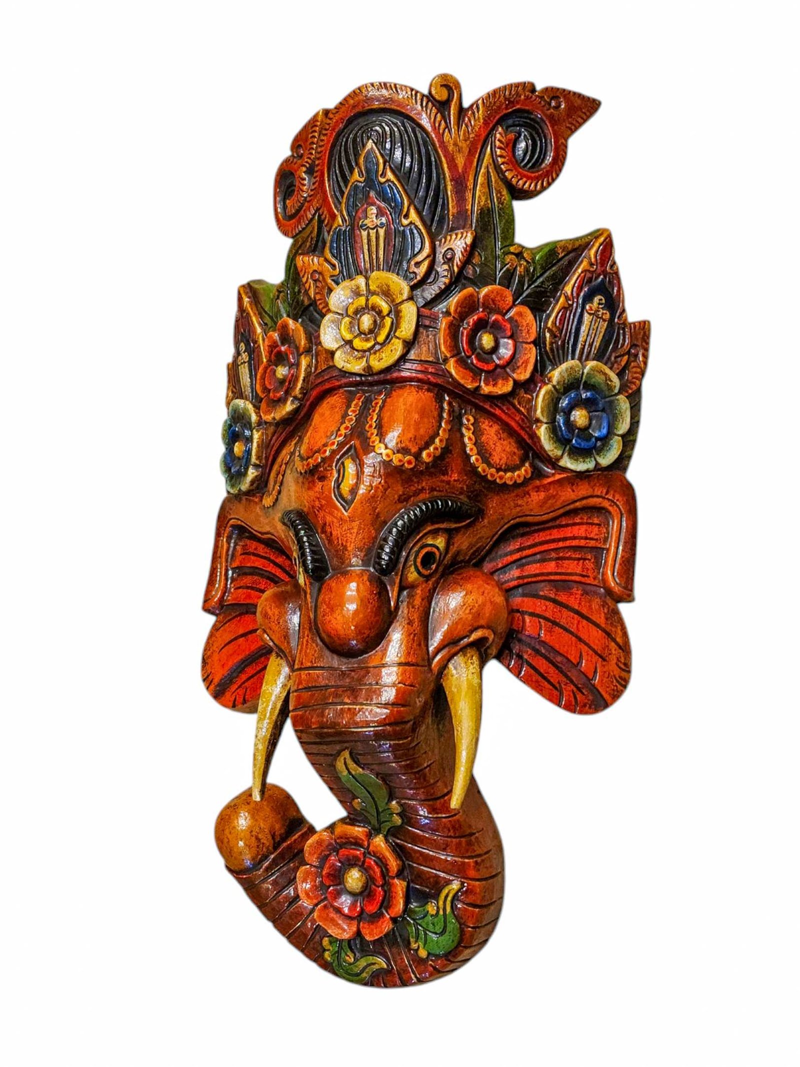Ganesh, Handmade Wooden Mask, Wall Hanging, Painted, Poplar Wood, High Quality , Remover of Obstacles, God of Wisdom and New Beginnings