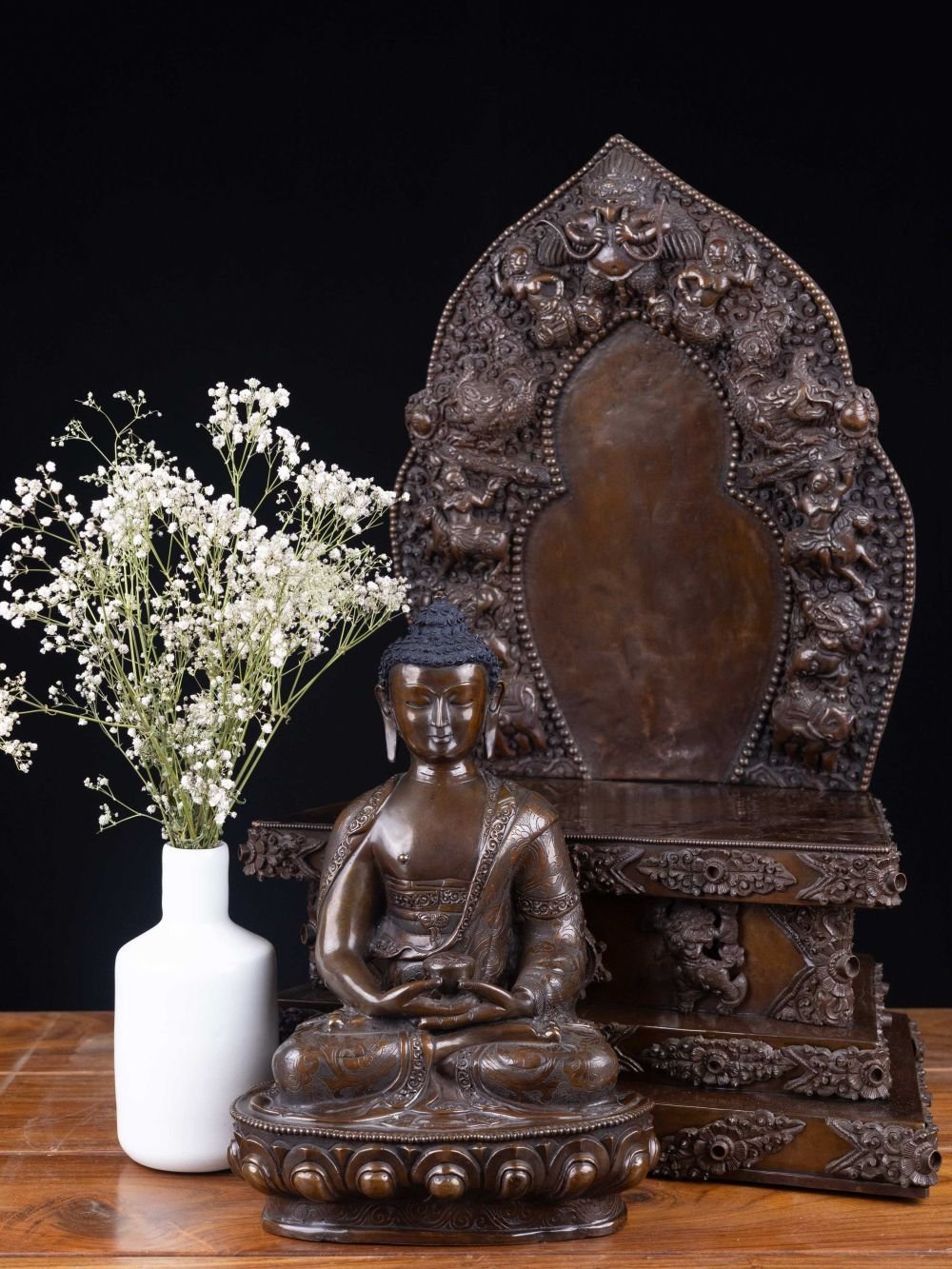 Amitabha Buddha Buddhist Handmade Statue, Chocolate Oxidized, High Quality , Buddha of Infinite Light: Symbol of Boundless Compassion