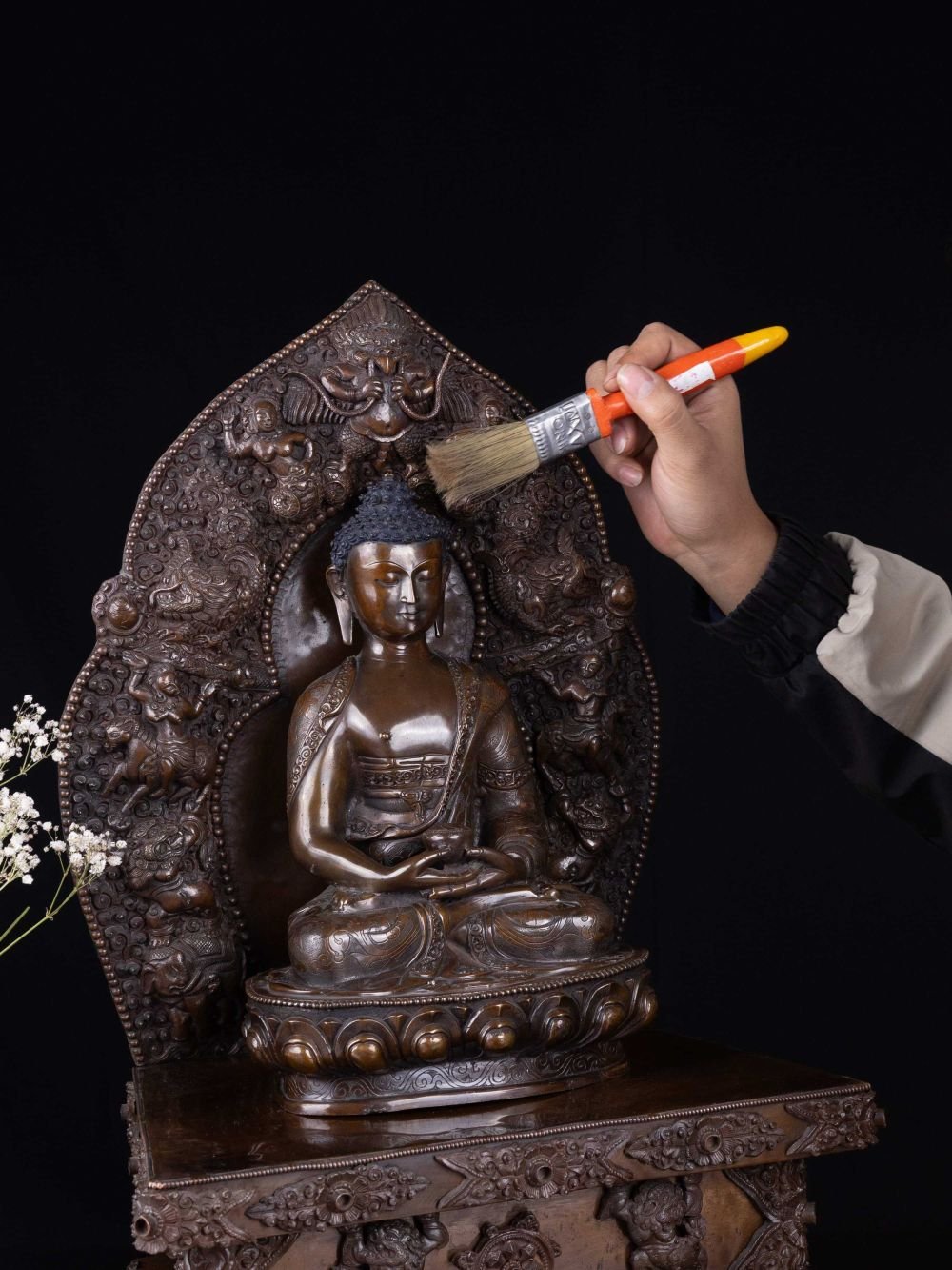 By imitating the natural aging process, the chocolate color antique patina lends an air of authenticity and vintage charm to the Amitabha Buddha. This carefully crafted finish ensures that the patina remains intact for an extended period, offering longevity and resistance to wear. The result is a unique piece that captures the essence of a time-worn copper statue, evoking a sense of history and artistic heritage.