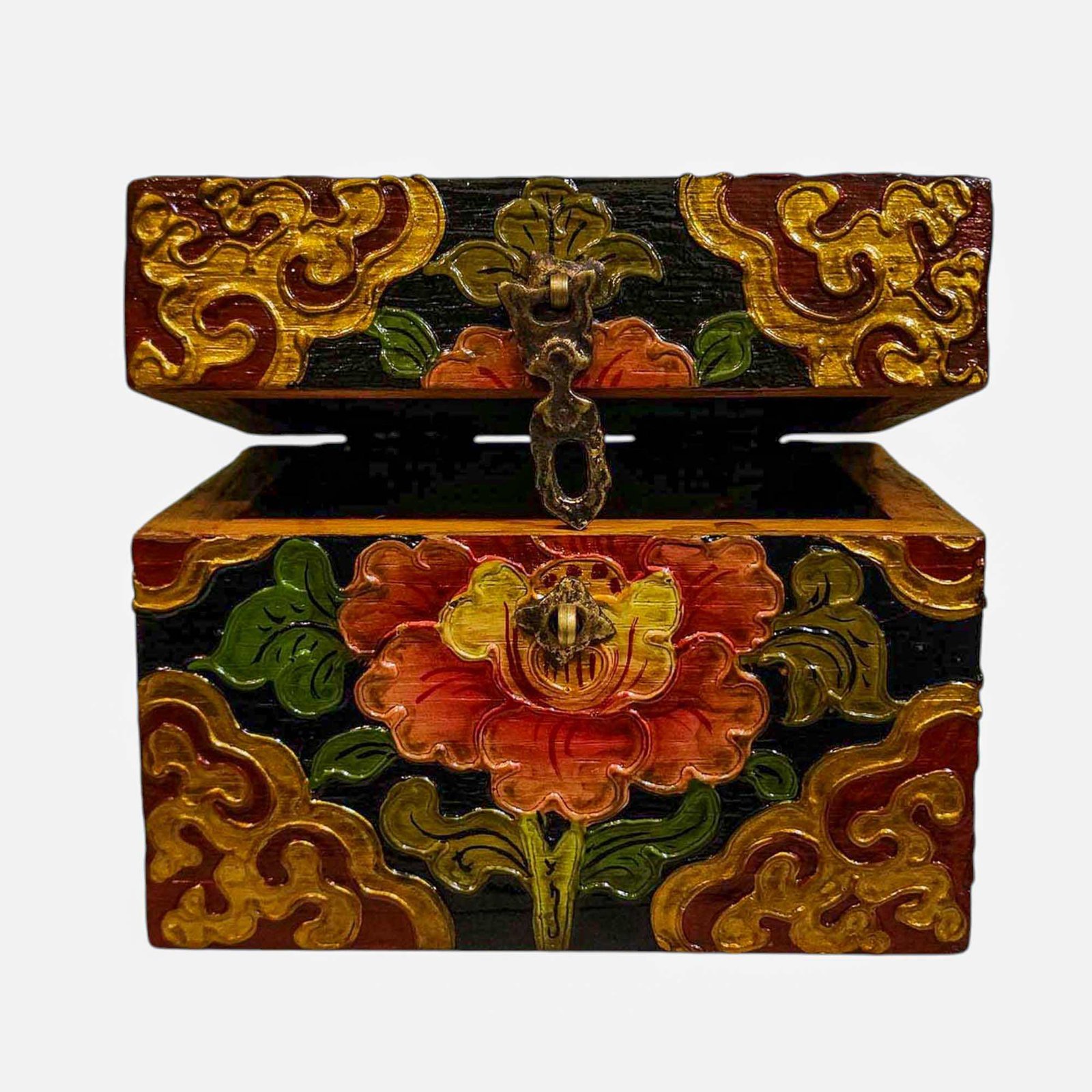 Spiritual Use: In Tibetan culture, these boxes may also be used in religious settings to store sacred objects, texts, or ritual items, preserving them in a manner that respects their spiritual significance.
