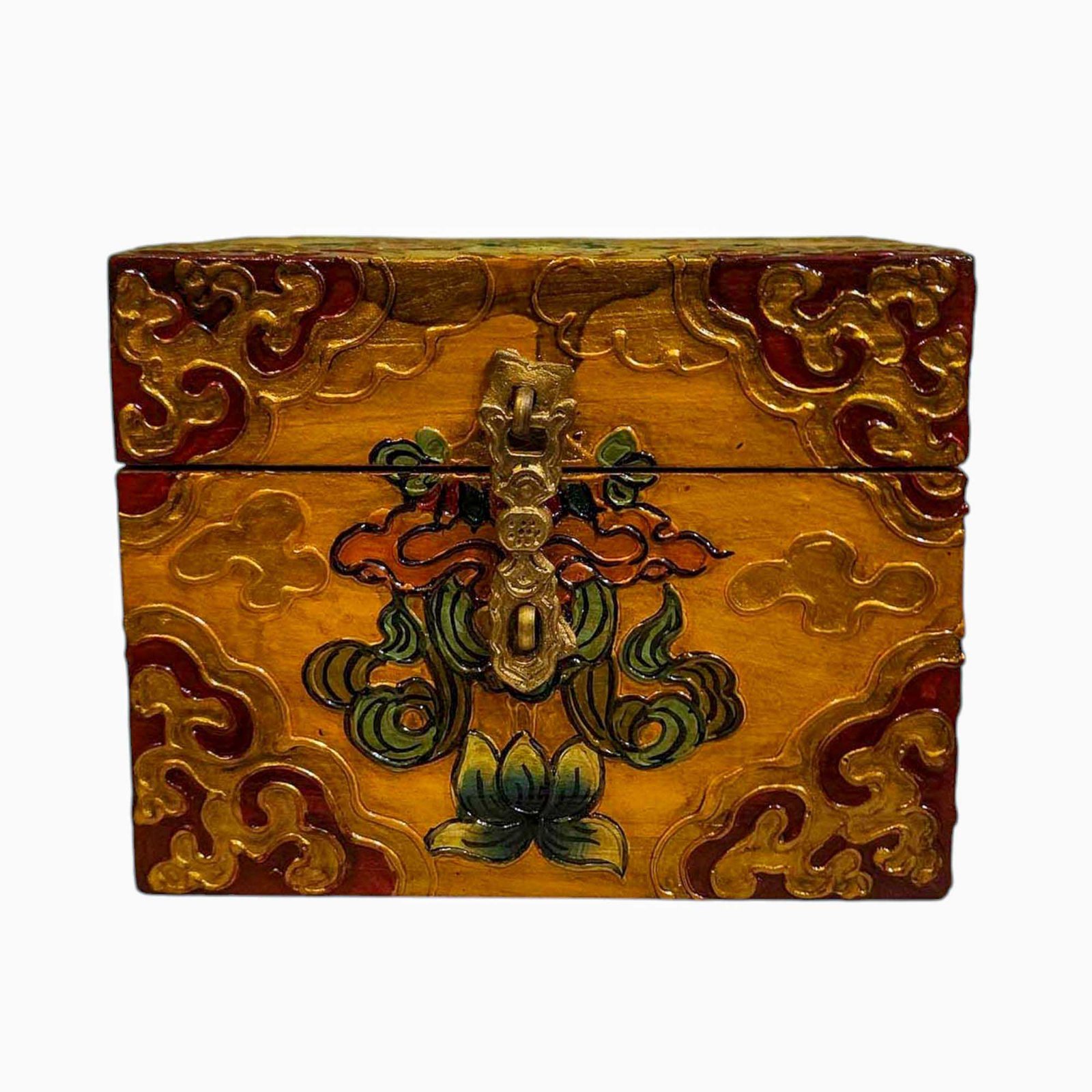 Buddhist Wooden Box, Tibetan Style with Traditional Colors |