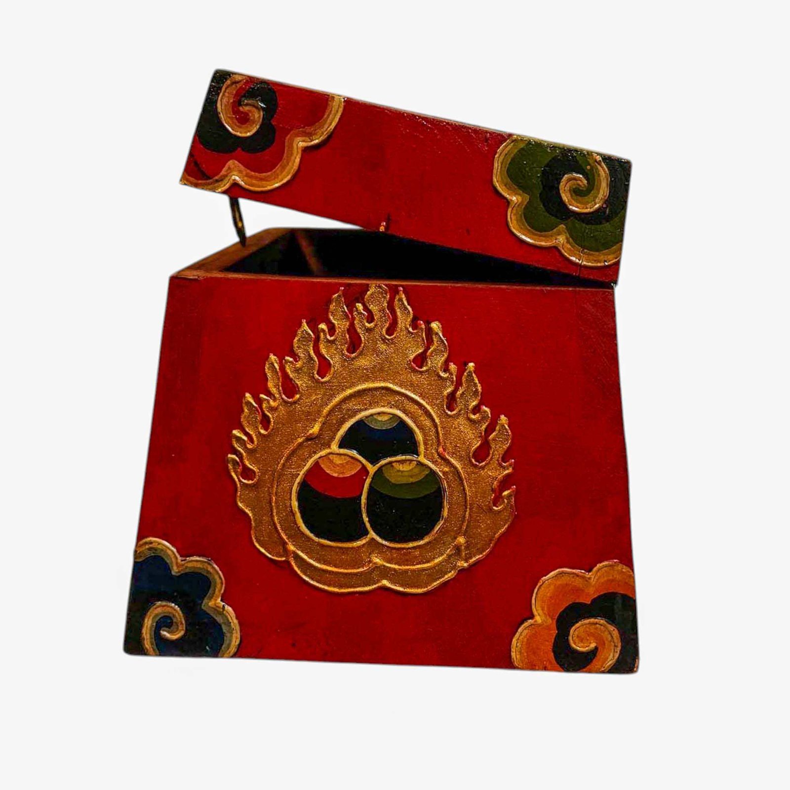 Buddhist Wooden Box, Tibetan Style with Traditional Colors |