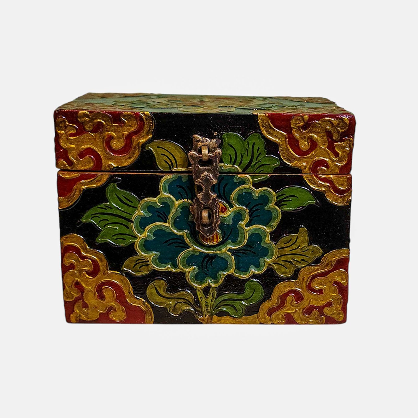 Buddhist Wooden Box, Tibetan Style with Traditional Colors |