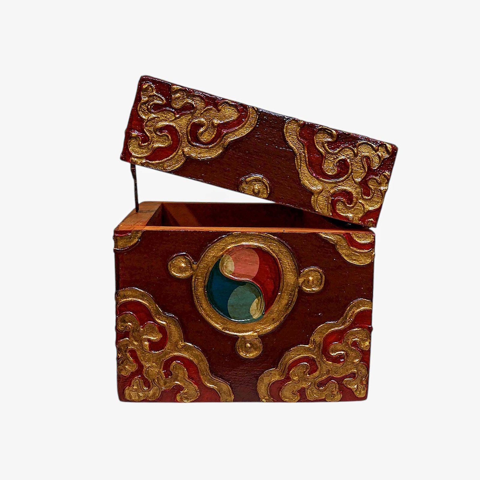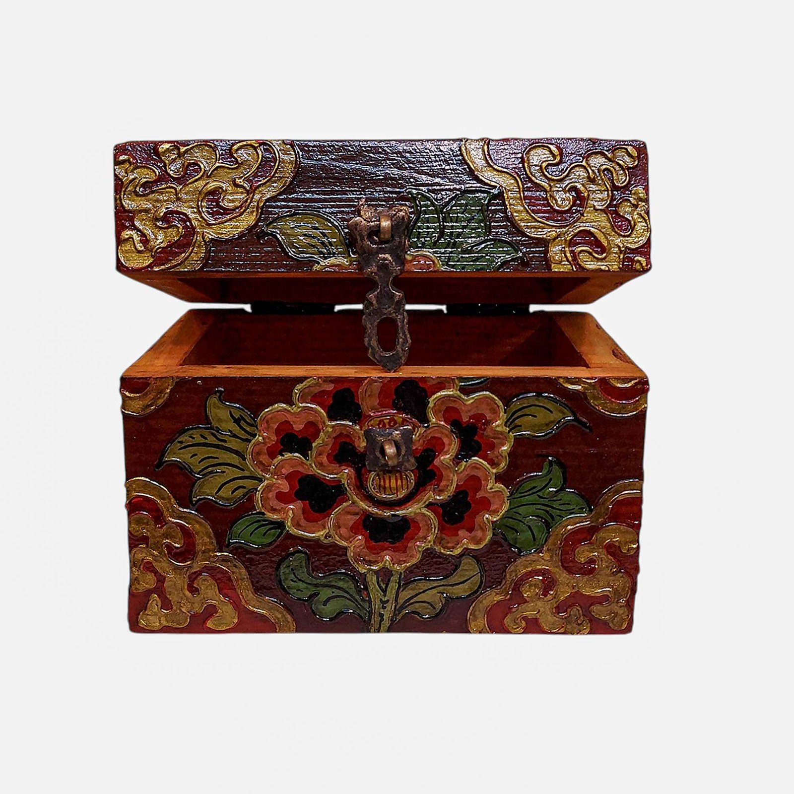 A Tibetan wooden box is a handcrafted storage container made from wood and often adorned with intricate Tibetan motifs and vibrant colors. These boxes are typically crafted by skilled artisans using traditional techniques passed down through generations. The decorations on the box usually include symbols of good fortune, such as lotus flowers, endless knots, dragons, or mythical creatures, and are painted in vivid hues like red, blue, green, and gold. These motifs not only add to the aesthetic appeal but also carry significant cultural and spiritual meanings in Tibetan Buddhism. Read More