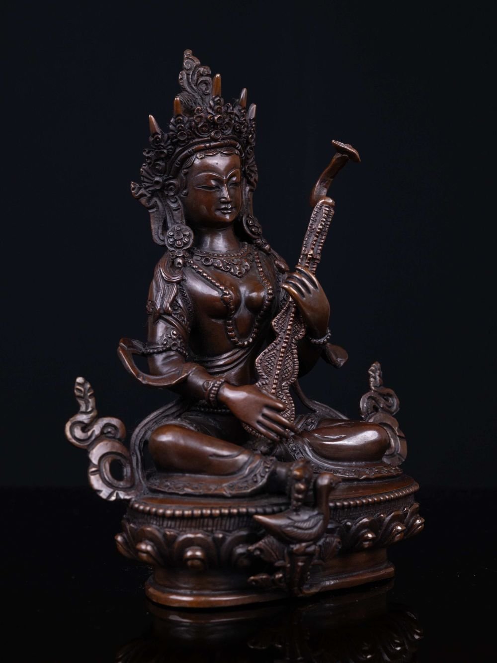 Saraswati, Buddhist Handmade Statue, Chocolate Oxidized, High Quality , Goddess of wisdom, music, and art, inspiring creativity and knowledge