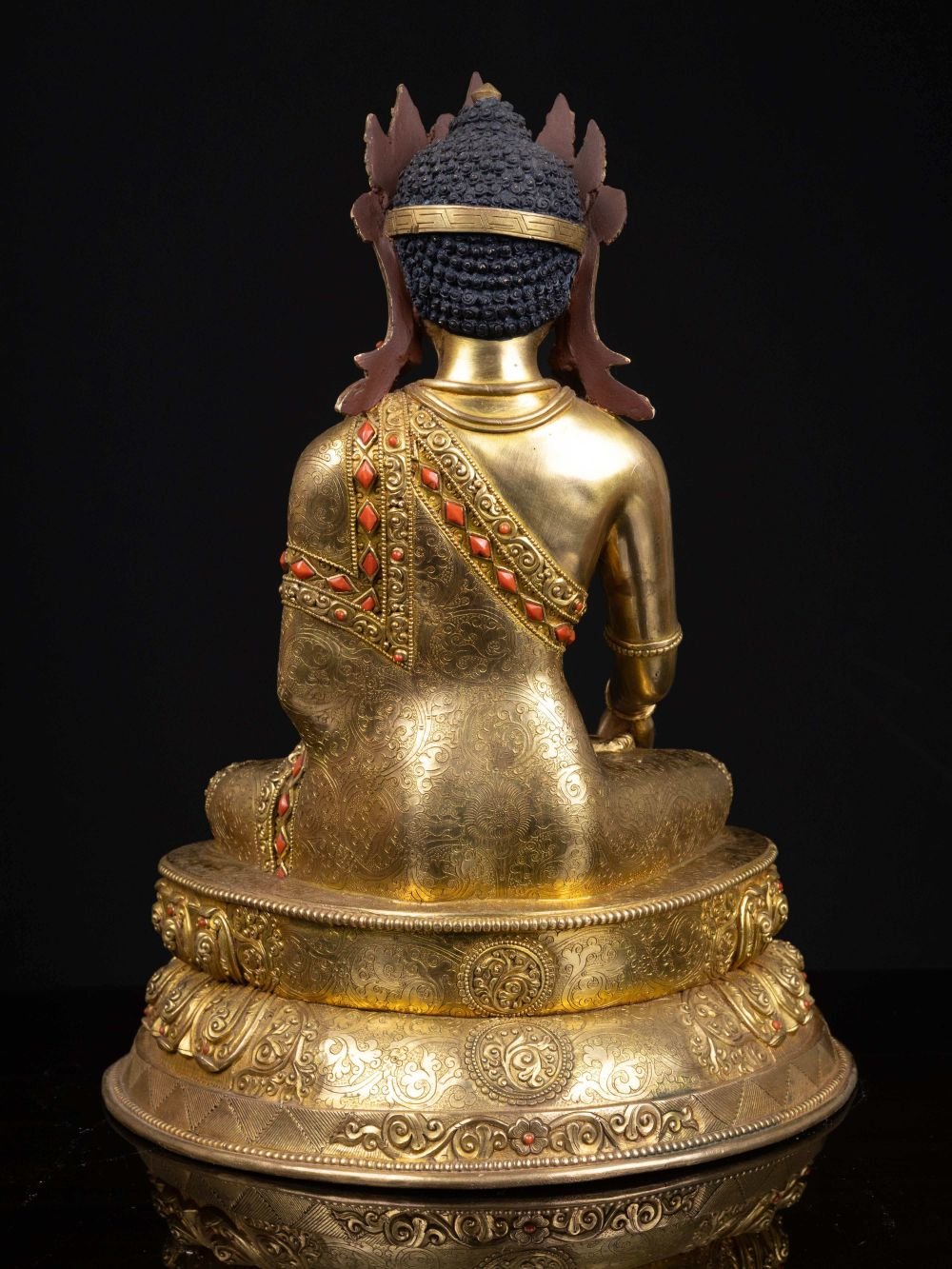 This Shakyamuni Buddha is finished with full gold plating. also known as mercury gold plating or fire gold plating. This traditional technique involves the application of a genuine layer of gold onto the Shakyamuni Buddha. Referred to as mercury gold plating, it is considered the correct and authentic form of gold plating in Nepal. Despite being more expensive than electroplating, this traditional mercury gold plating is gaining popularity again in Nepal. People are drawn to its authenticity, longevity, and the unmatched beauty it brings to the Shakyamuni Buddha. The resurgence of interest in this traditional form of gold plating reflects a growing appreciation for the craftsmanship and cultural heritage of Nepal Read More