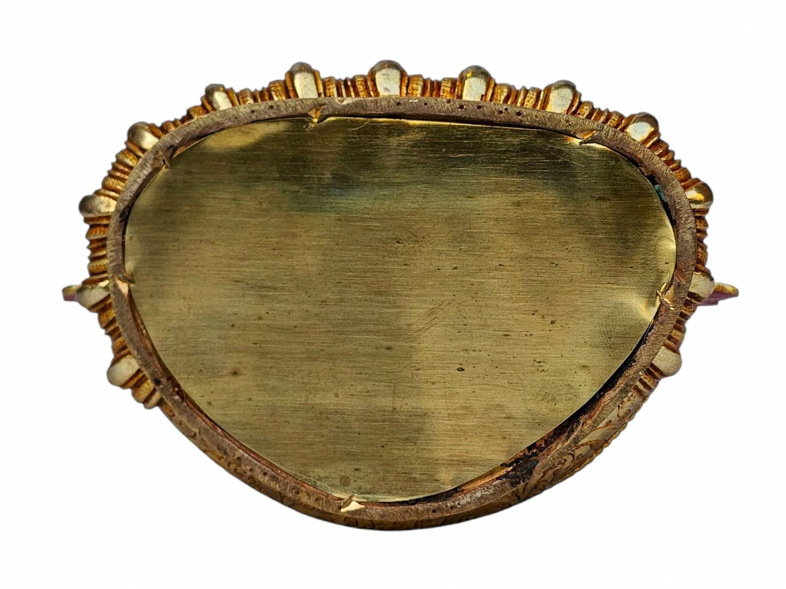 The face of Chenrezig is painted with gold to enhance its significant features, particularly the eyes, and lips. This detailed painting is essential as it brings forth the crucial attributes of the expression of eyes and lips that metal carving alone cannot capture.