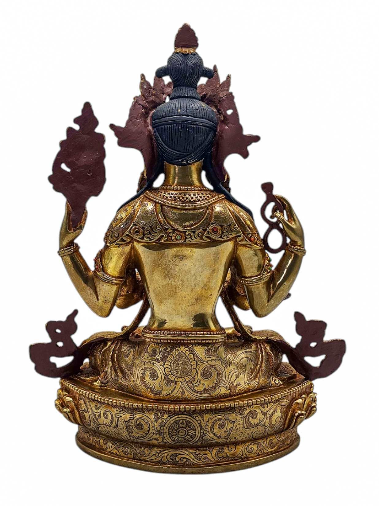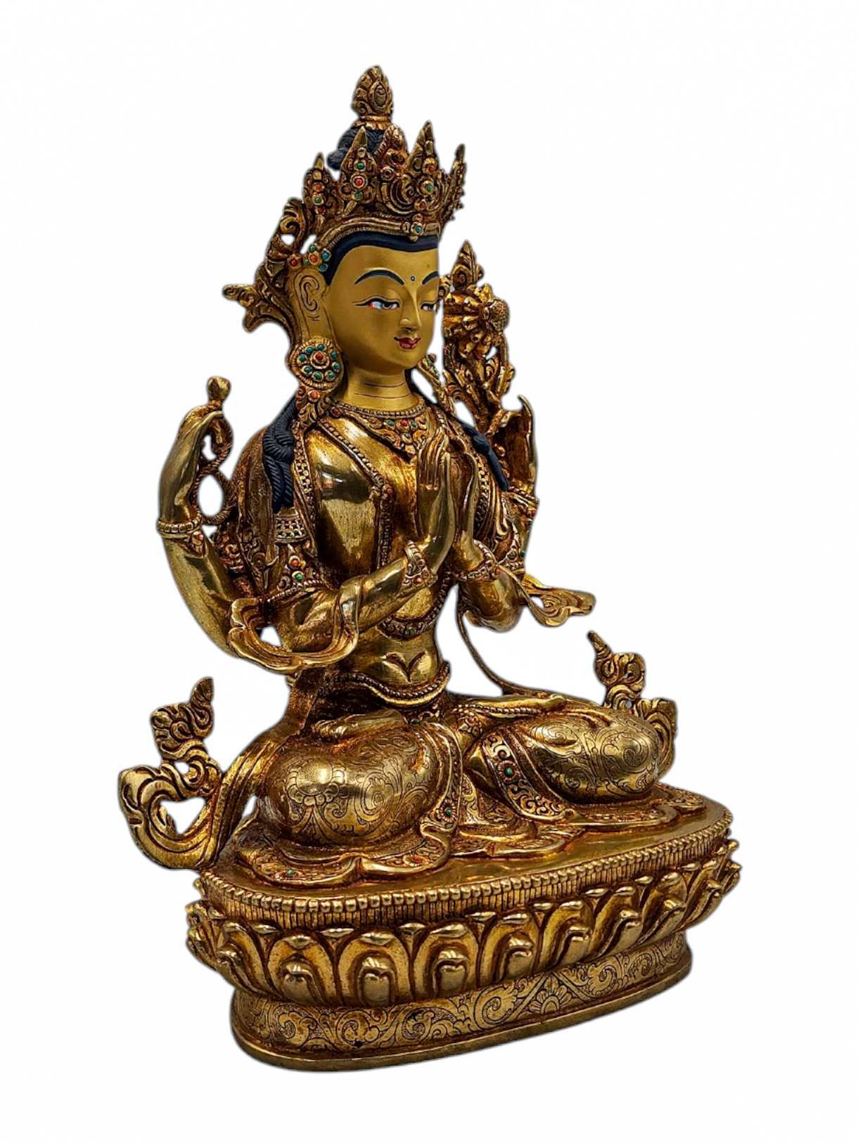 Chenrezig, Buddhist Handmade Statue, Full Gold Plated, Face Painted and High Quality , Bodhisattva of Compassion, Protector of All Beings